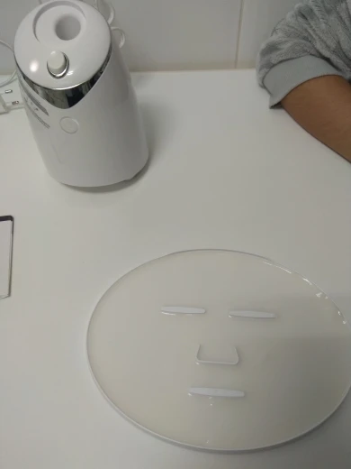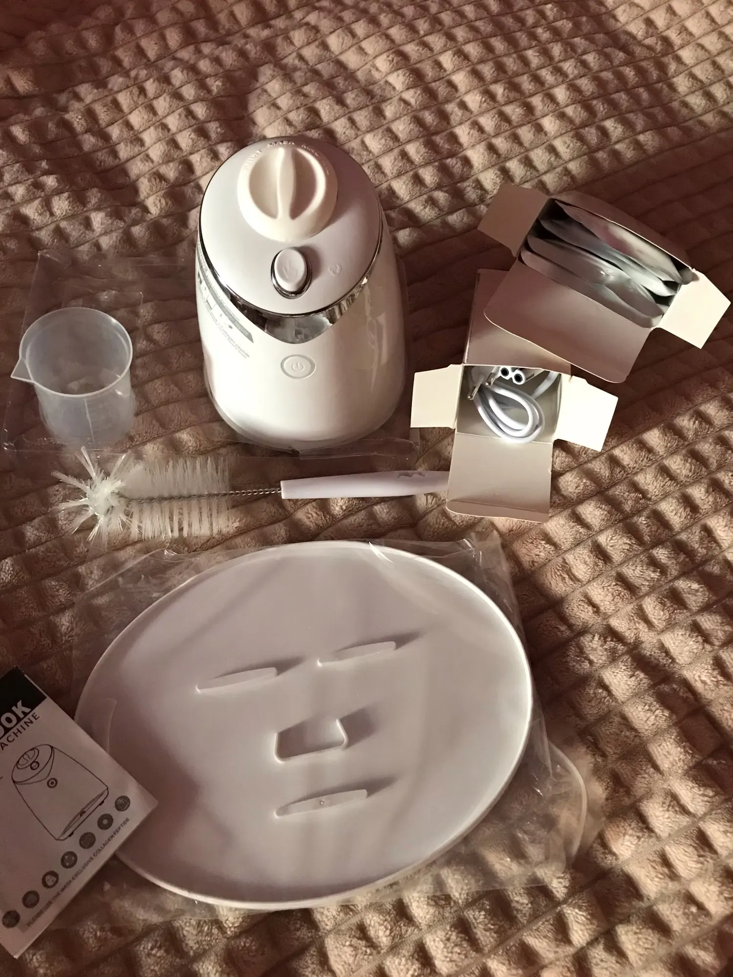 Описание и фото точные. Машинка небольшая, голосовые подсказки на английском. В комплекте несколько пакетов с альгинатом. Фрукты, алоэ, травы - делаю маски на свой вкус. Доставка долгая, больше 2х меся ев СДЕК. Товар и продавца рекомендую!