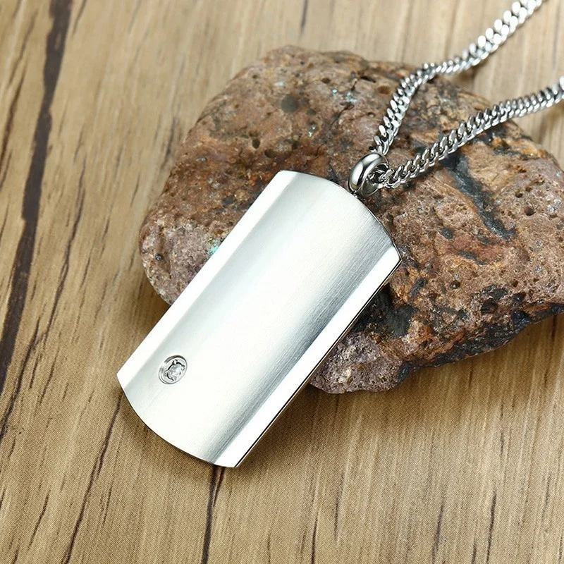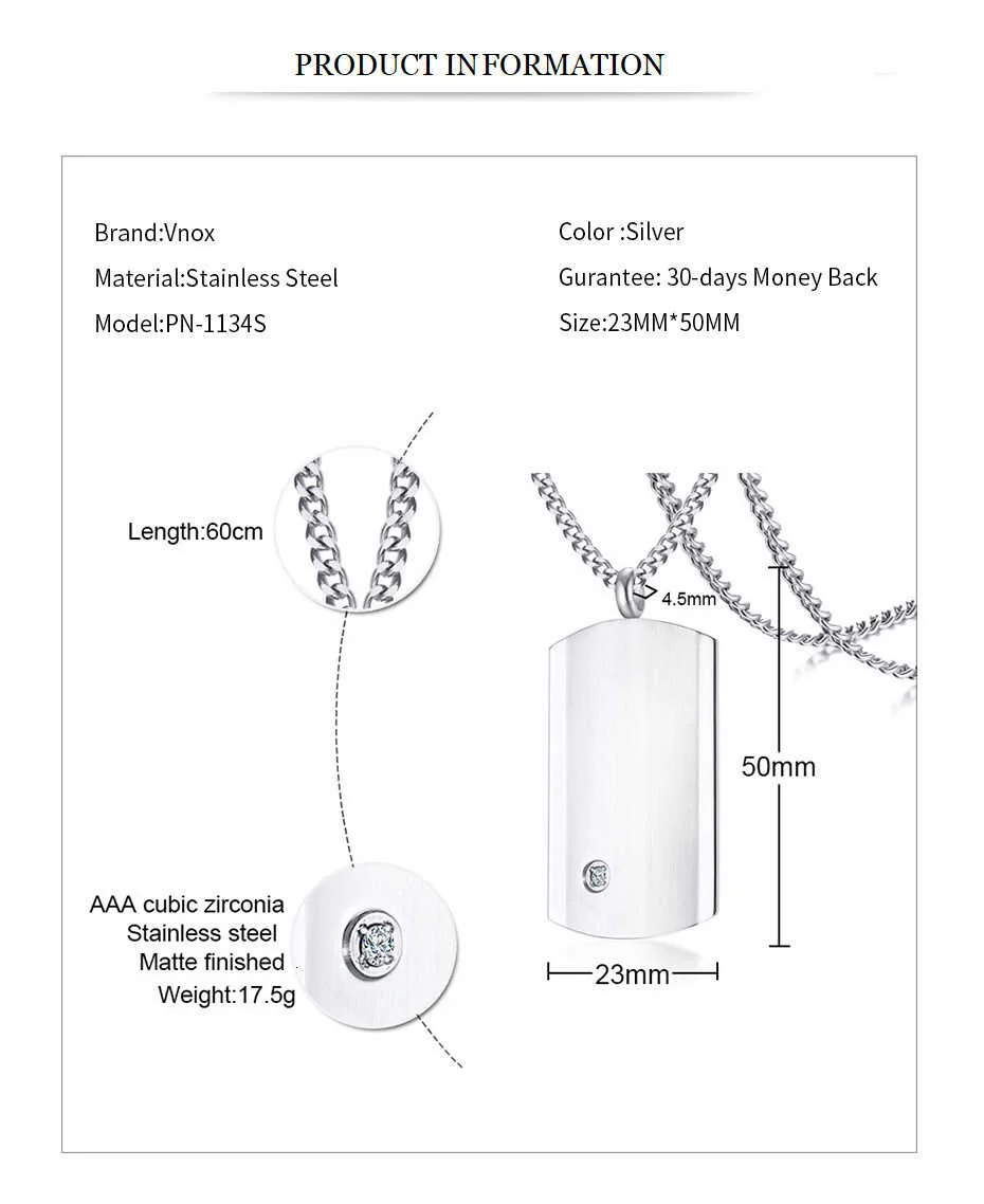 Vnox Простой ID Собака бирка кулон ожерелья для мужчин женщин мужчин ювелирные изделия с AAA кубического циркония 24 "Снаряженная Цепь