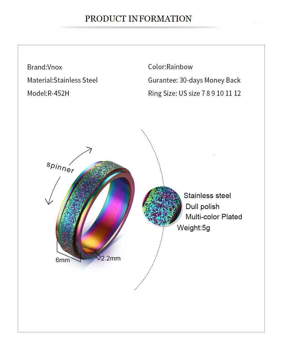 Кольца для мужчин Vnox 6 мм Спиннер из нержавеющей стали, пескостру...