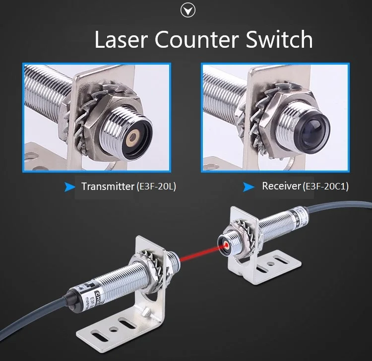 M12 лазерный счетчик фотоэлектрический переключатель водонепроницаемый E3F-20C120л инфракрасный 20 м детективный датчик видимого света с держателем