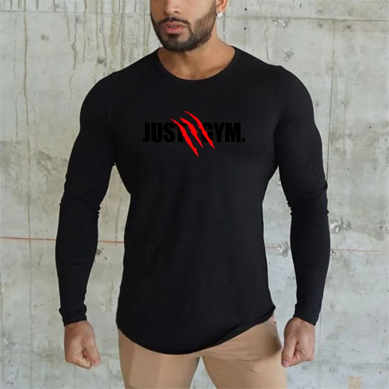 Мужская спортивная футболка с длинным рукавом Muscleguys, осенняя футболка с круглым вырезом для бодибилдинга, брендовая одежда для фитнеса, облегающая футболка, Мужская футболка
