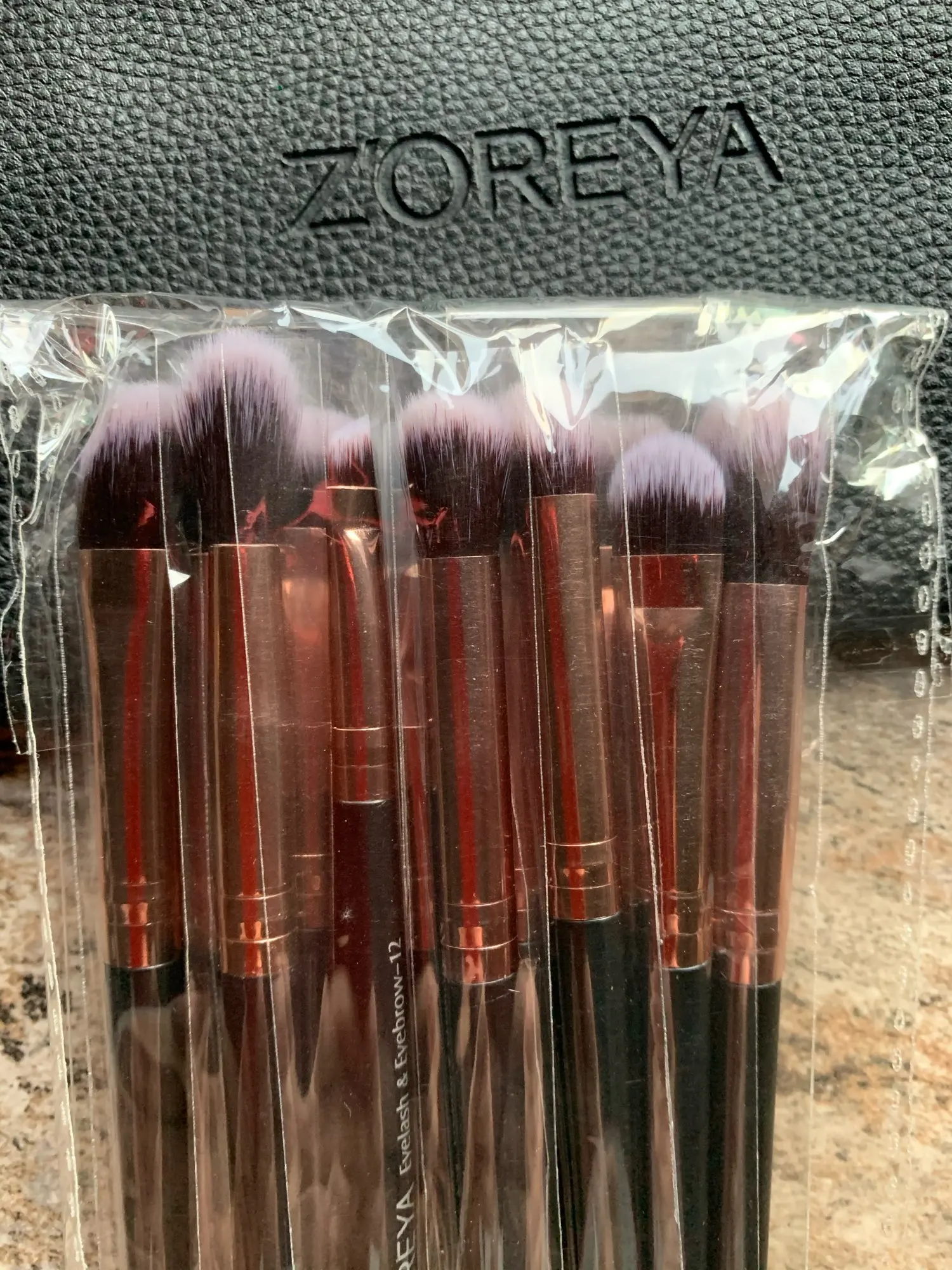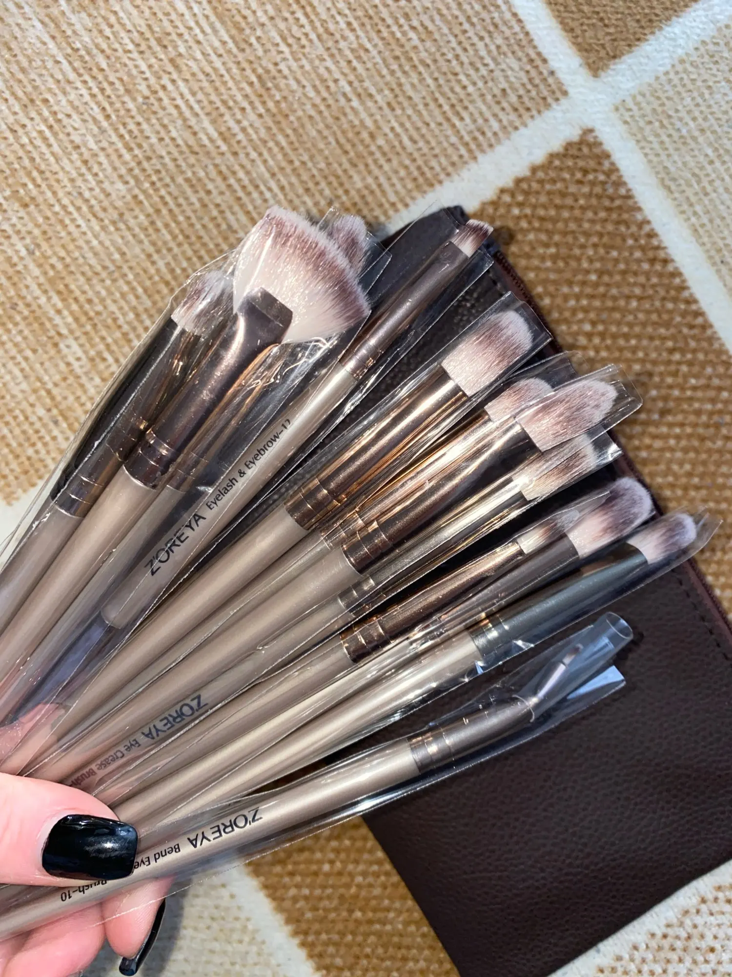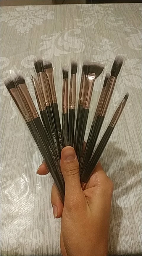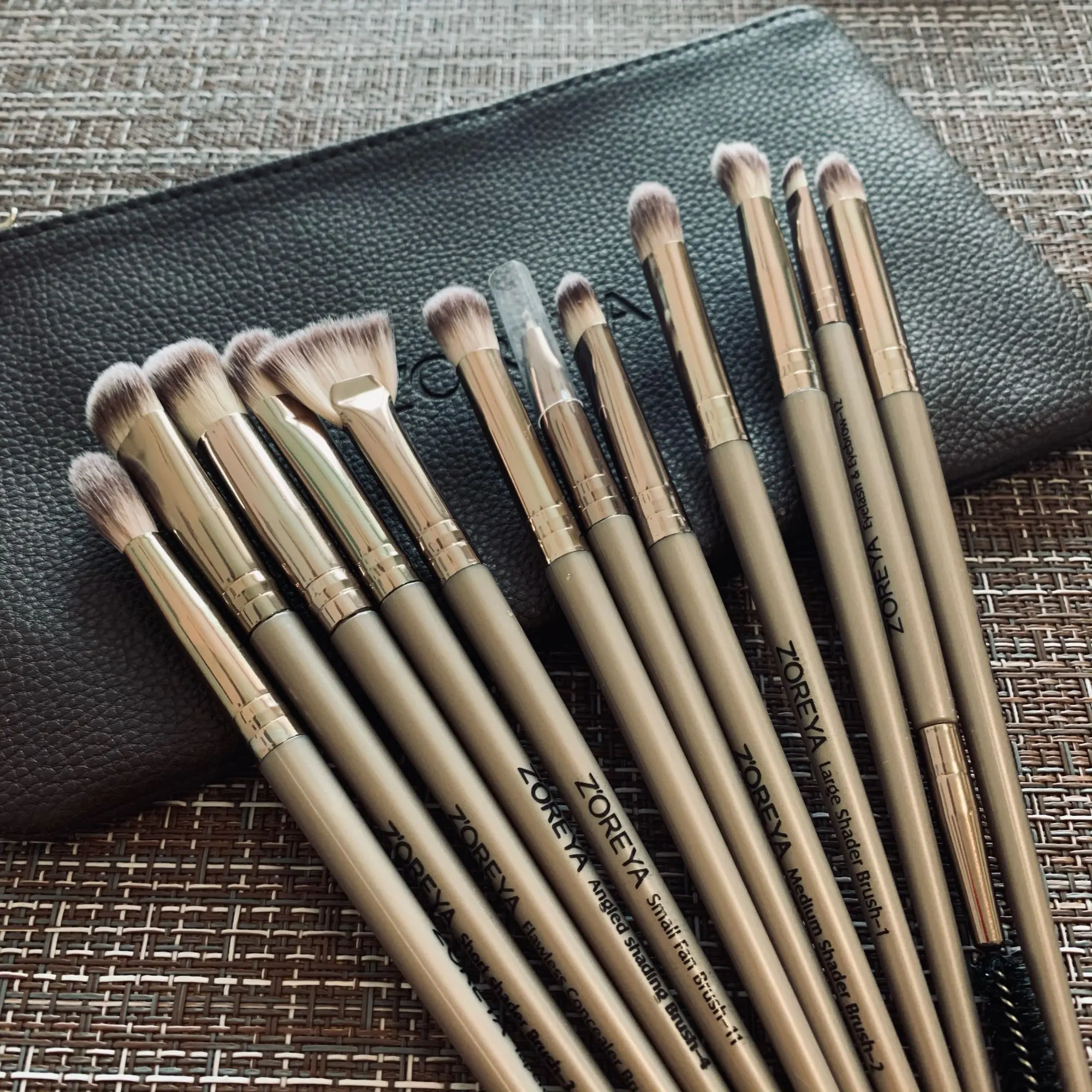 Профессиональные кисти для макияжа ZOREYA, 12 шт., черные тени для век, набор кистей для макияжа, для смешивания подводки для бровей, маленький веерный косметический инструмент