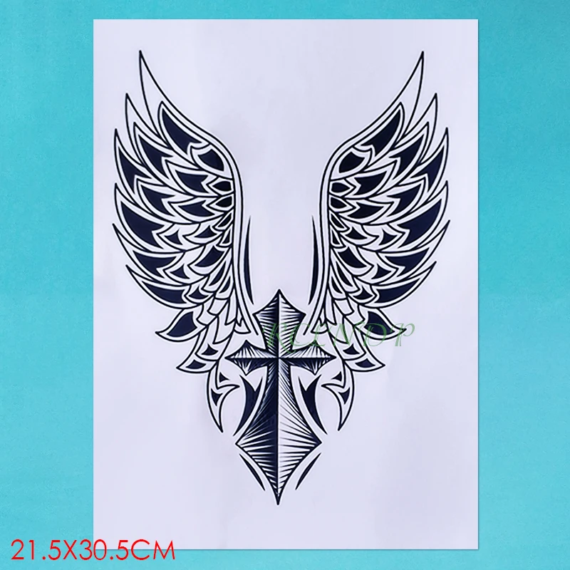 Водостойкая временная татуировка, перекрестное крыло, ангел, татуировка на всю спину, Большая татуировка, флэш-тату, поддельные татуировки для мужчин, девочек