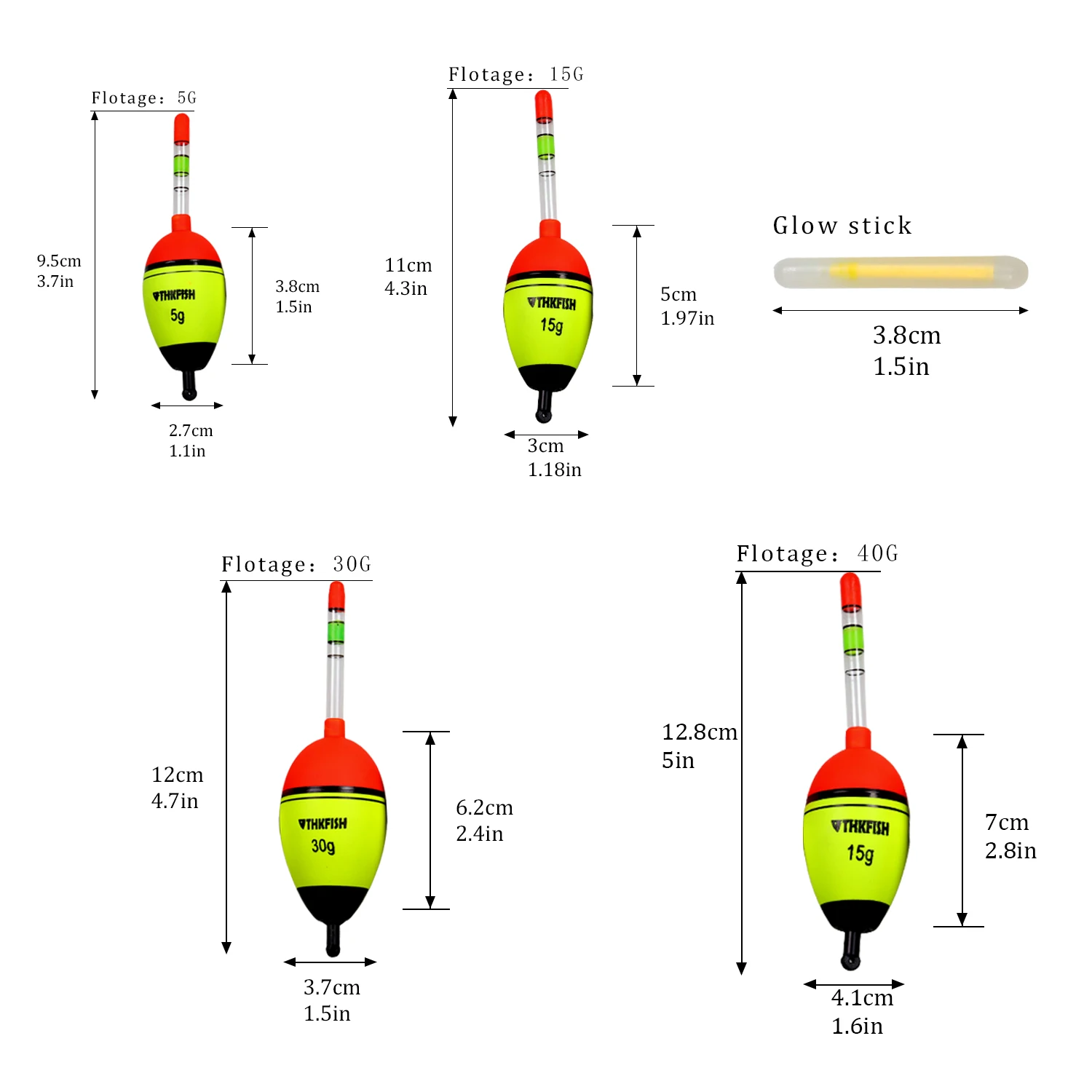 Ночная светящаяся рыболовная поплавок 5 шт. 5g 1 5g 30 г 40 г эва Поплавок + 10 шт. светящийся светильник светящаяся палка Рыболовные Поплавки светильник ing поплавок трубка