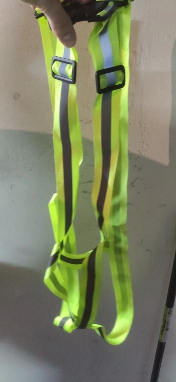 Досить проста конструкція. Стрічки (статичні, не тягнуться) з люмінісцентною смужкою. Шлеййки і пояс регулюються. Фурнітура наче нормальної якості. На зріст 182 см 80 кг розміру вистачило з запасом. Трохи є запах "пластику". Доставка 30 днів (з моменти оплати) до Києва з УкрПошта.