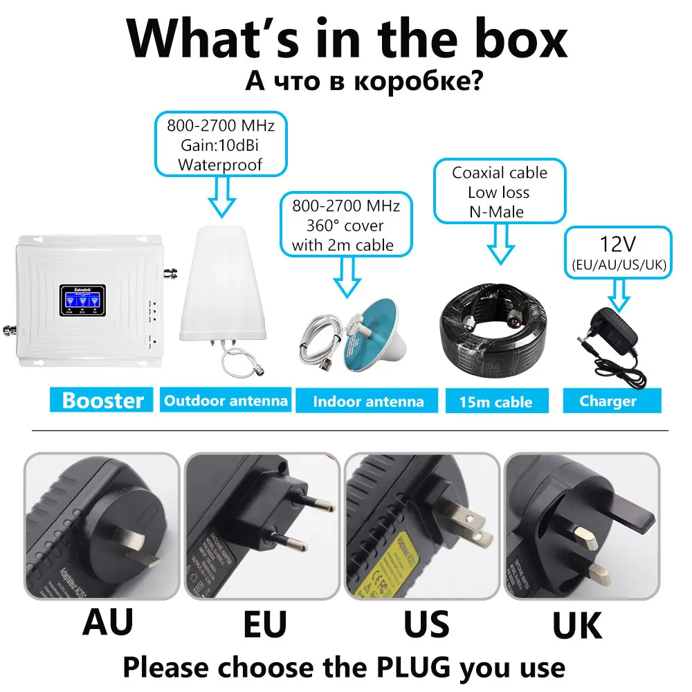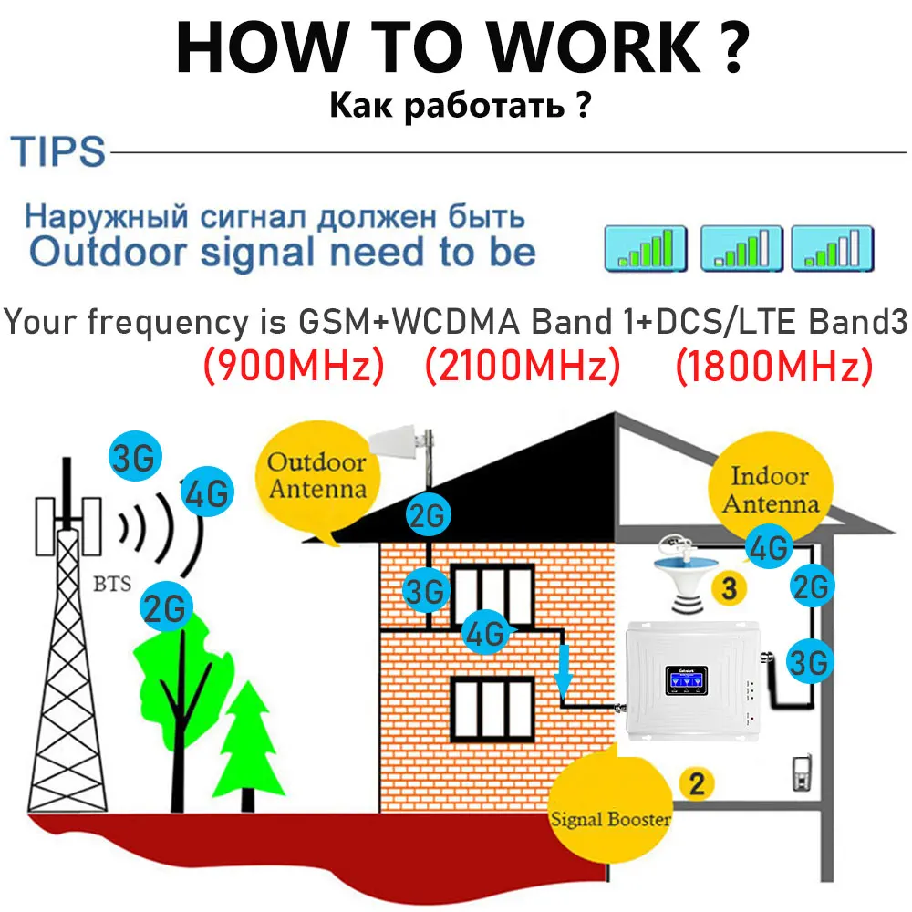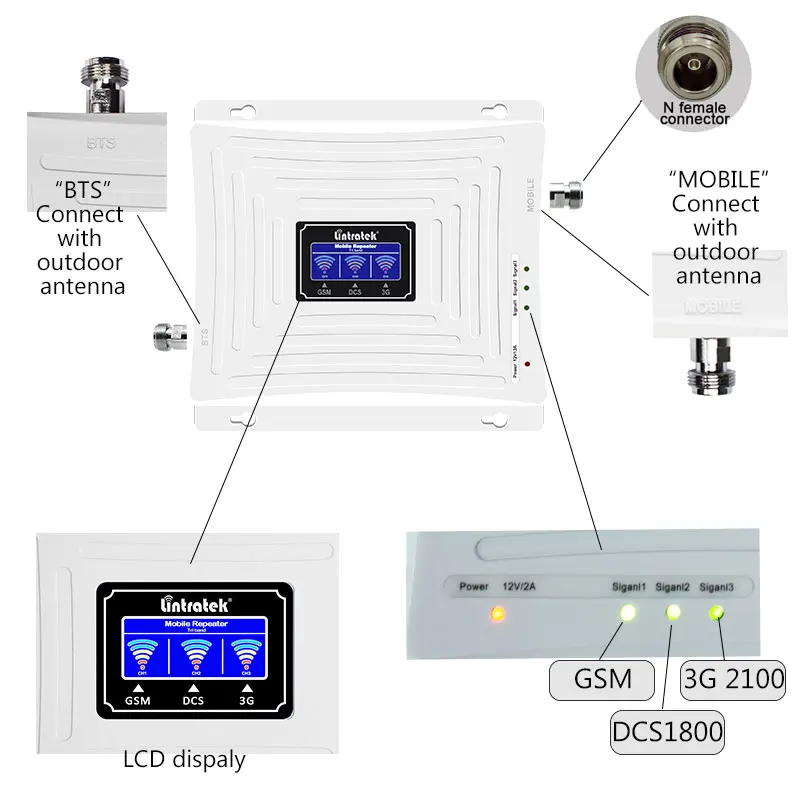 Усилитель сотового сигнала Lintratek, 2G 3G 4G GSM трехполосный 900 DCS 1800 WCDMA 2100