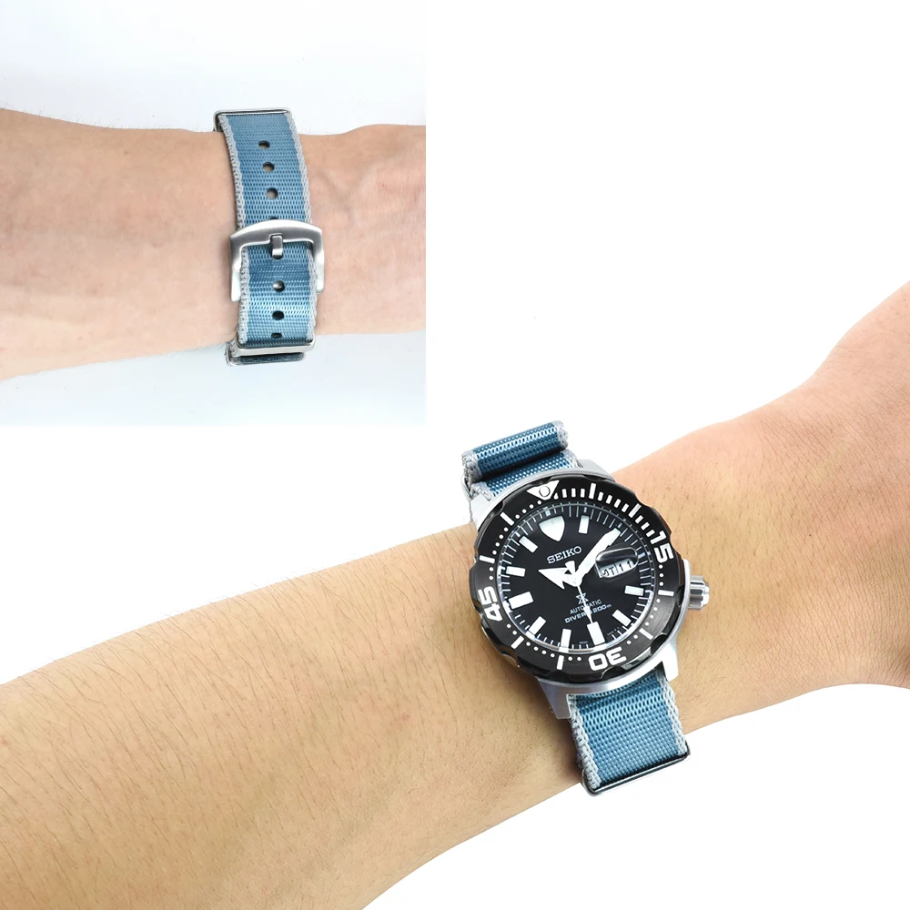 Ремешок для часов, нейлоновый, 22 мм, в синююсерую полоску