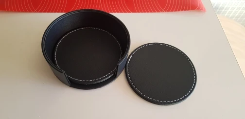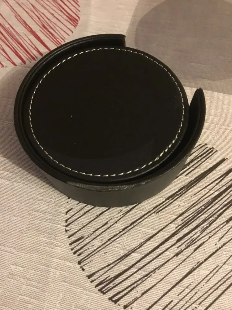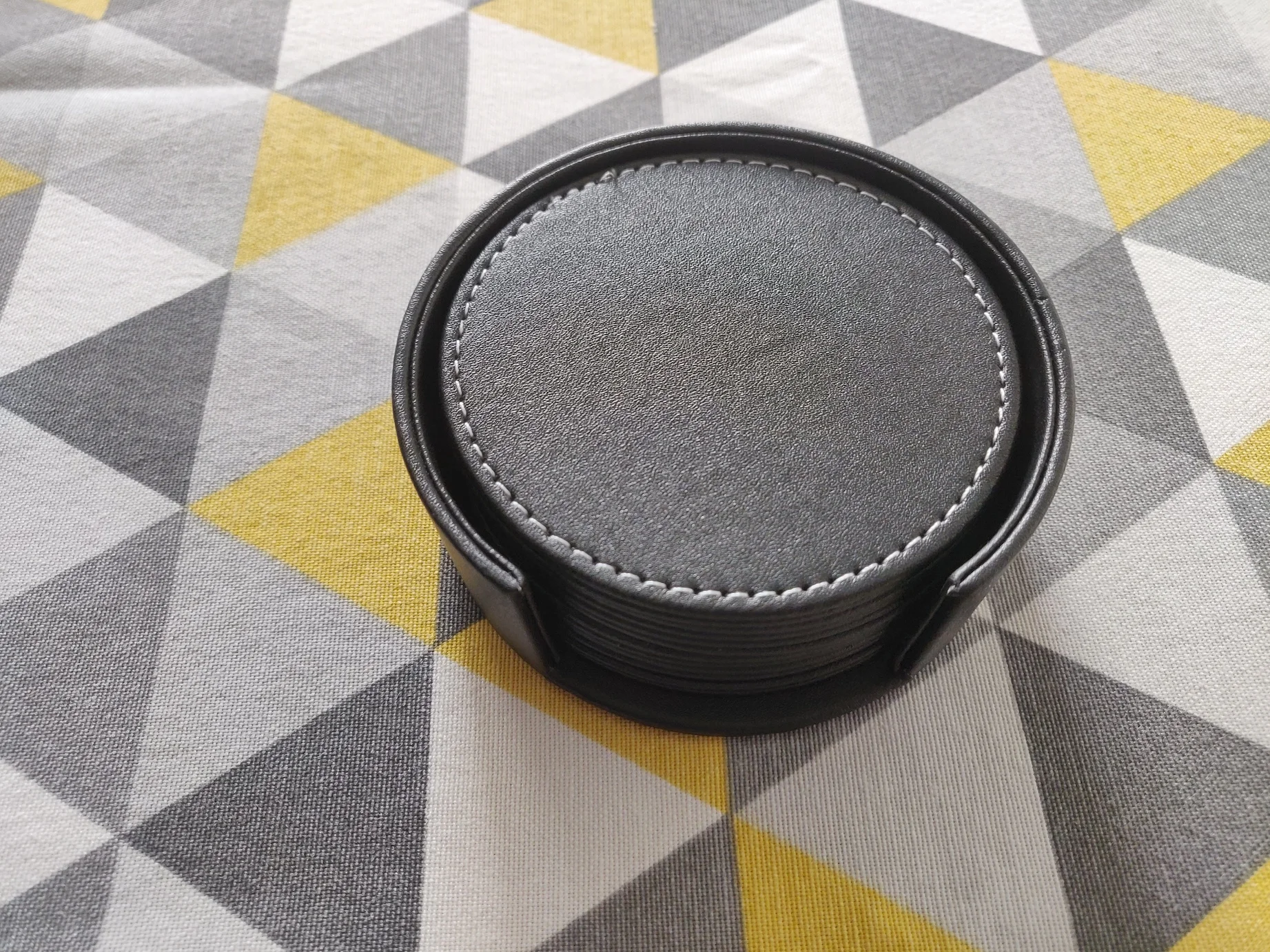 Набор из 6 кожаных подставок для напитков, круглый коврик под чашку подставок для домашнего и кухонного использования, черного цвета
