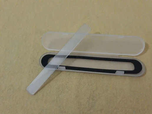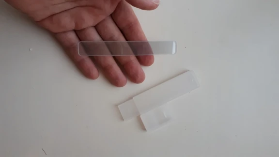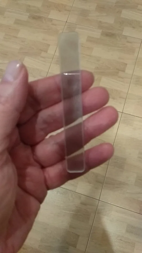 Хорошая стеклянная пилка для ногтей. Не шлифовывает Край ногтя, но тщательно полирует его. Односторонний файл, на второй стороне Нет надрезов. Коробка из полиэтилена, плотная, без заусенцев, легко открывается и закрывается. Посылка была тщательно упакована в пузырчатую пленку и почтовый противоударный пакет. Заказ на 01/31/2021, отправка на 02/02/2021, прибыла в почтовое отделение на 02/23/2021. Отличная вещь по своей цене. Я настоятельно рекомендую взять сразу несколько штук: один для домашнего использования, второй для вашего кошелька.