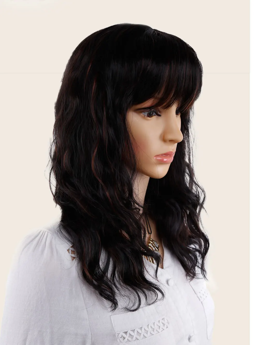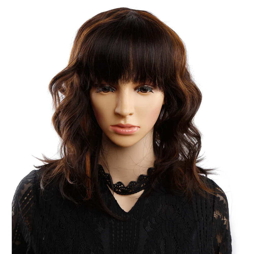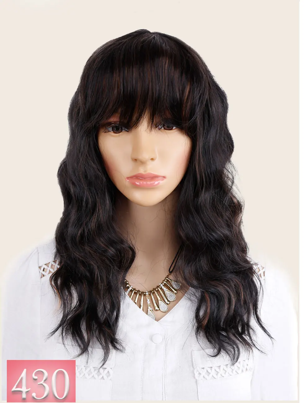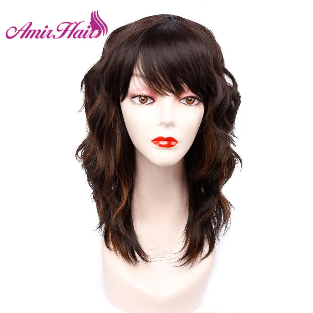 Amir черный парик с челкой натуральные волнистые парики для женщин черный смешанный коричневый парик длинные боб синтетические волосы парики Peruca