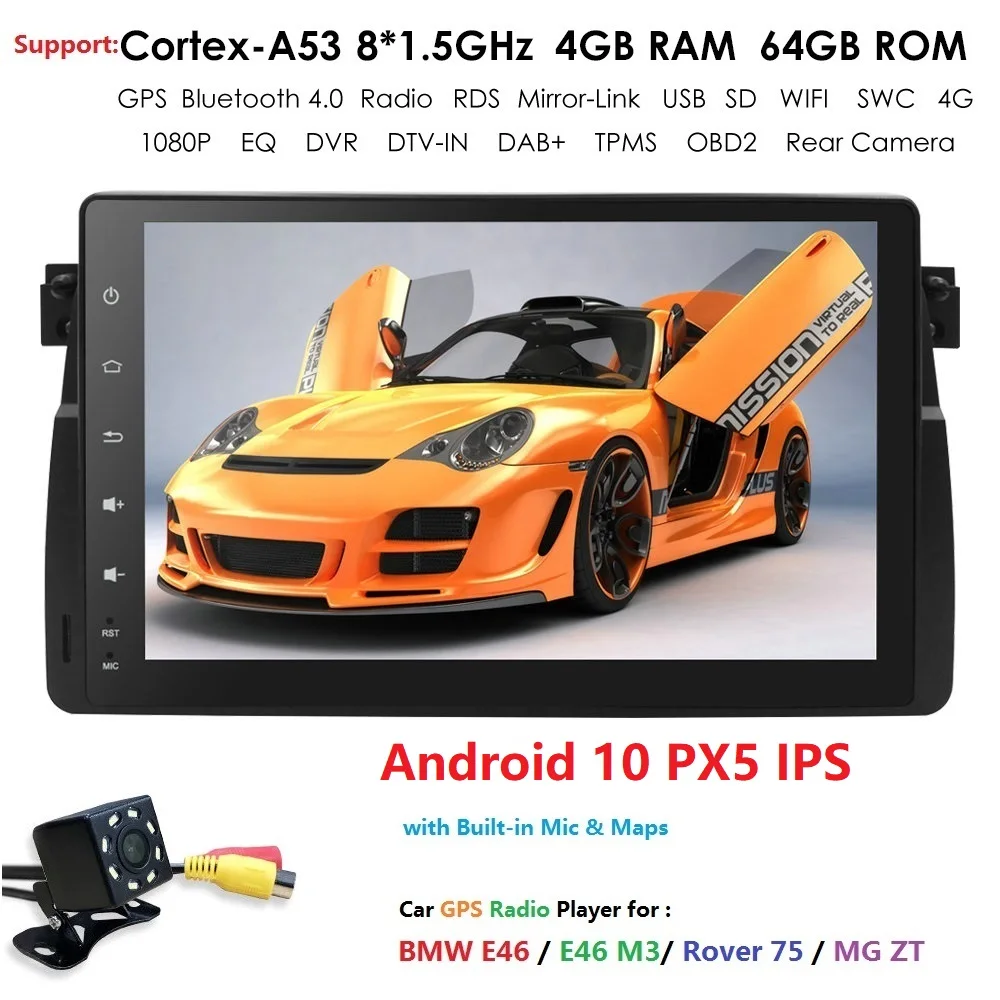 9 "Android 10 48Core DSP IPS Автомобильный GPS плеер для bmw E46,M3 навигация, wifi, радио, bluetooth,SWC Canbus MIC сенсорный экран dab tpms