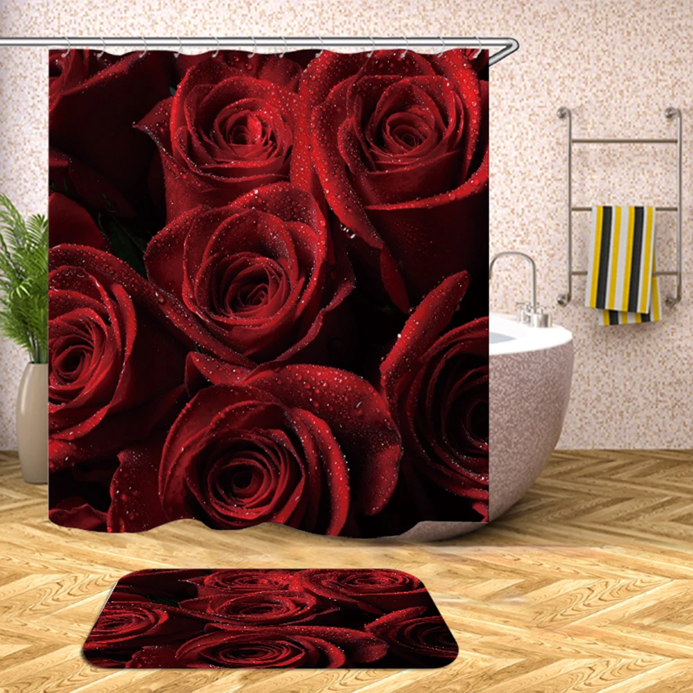 Красная роза цветок занавеска для душа день Святого Валентина занавеска для ванной