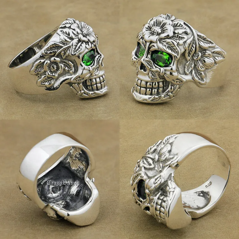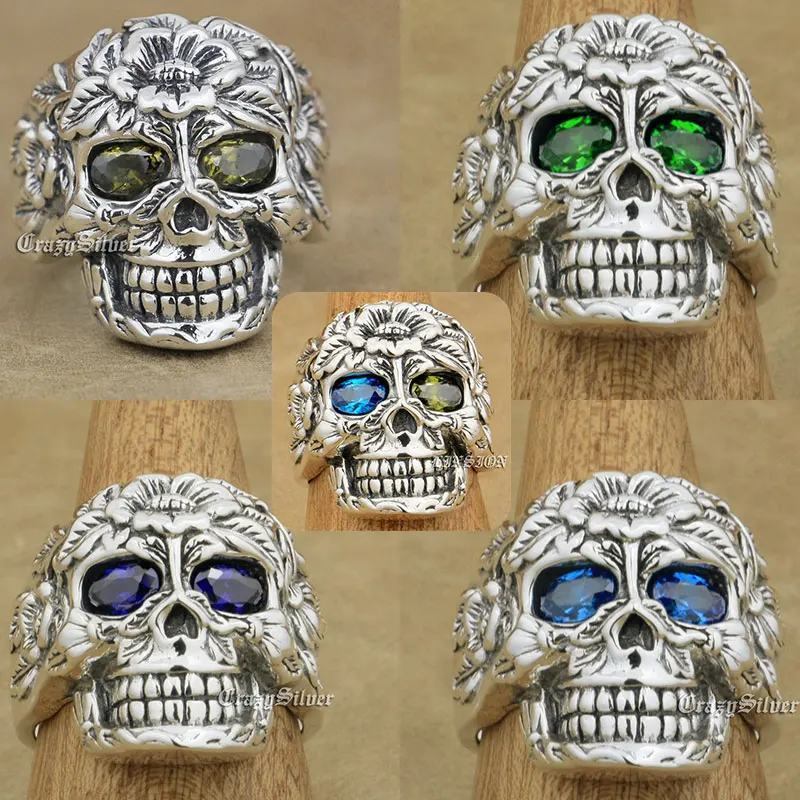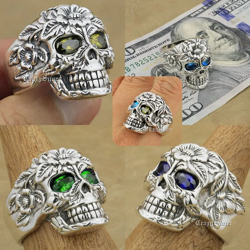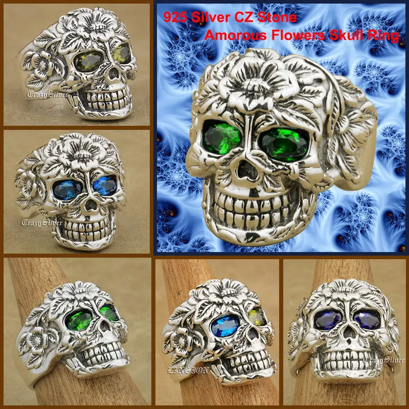 Твердое Стерлинговое Серебро 925 пробы крутой рыцарь индивидуальность любовные цветы череп, кольцо для панков рок Ретро мода CZ камень кольцо 9W123405