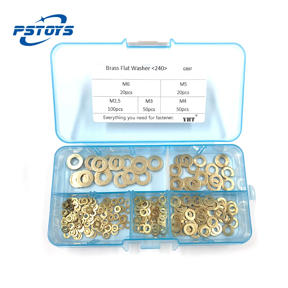 Прокладка из листового металла 240 шт.компл. GB97 DIN125 ISO7089 M2.5 M3 M4 M5 M6, латунная плоская шайба, плоская прокладка, чистый комплект