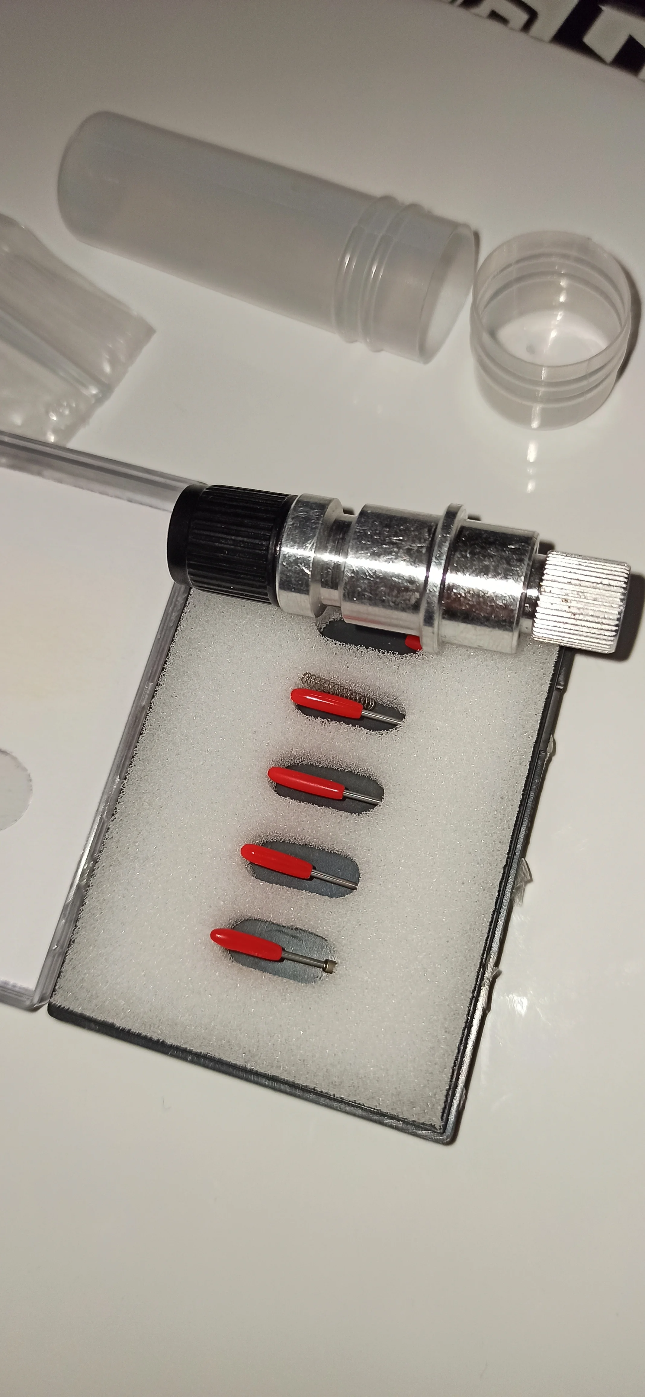 Из беглова читания форумов, выяснил что есть два типа корпуса со встроеной возвратной пружинкой и без. Мне попался со встроеной, на фото к описанию корпус без возвратной пружины. По фото к отзовам - где с пружинкой, где без. С продовцом не общался, трек номер дали на следующий день, отправили еще через день. Заказывал дополнительно ножи разных углов, все пришло в одном пакете, скидку на доставку не сделали (корпус ножа с ножами 60гр., ножи 45 гр., ножи 30гр). Ножи визуально целые, в комплекте пружинки. Брал под silhouette cameo 4, в переходник встал, работу не проверял.