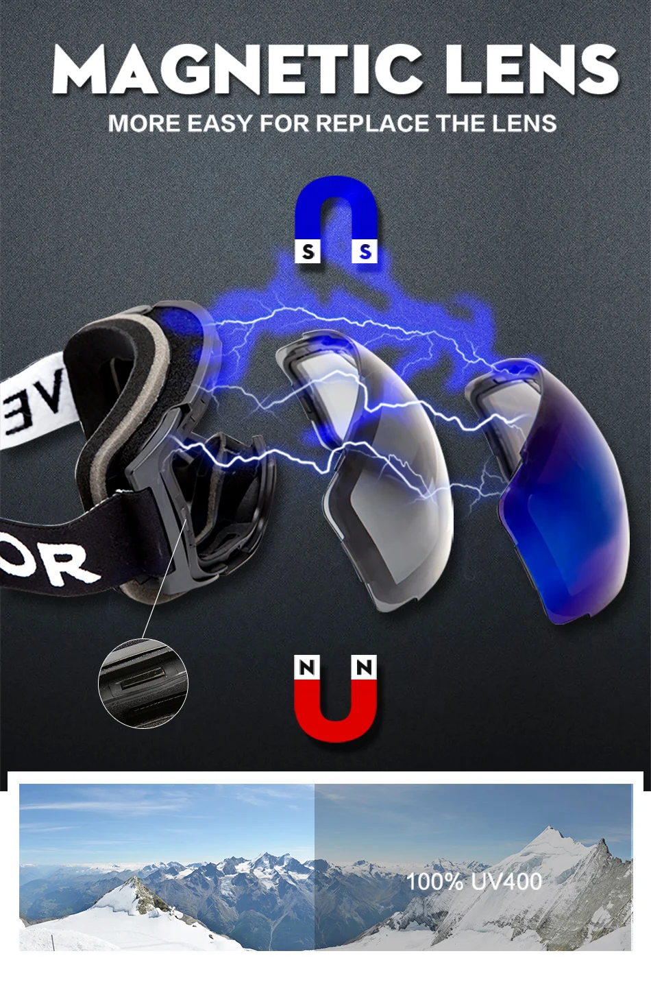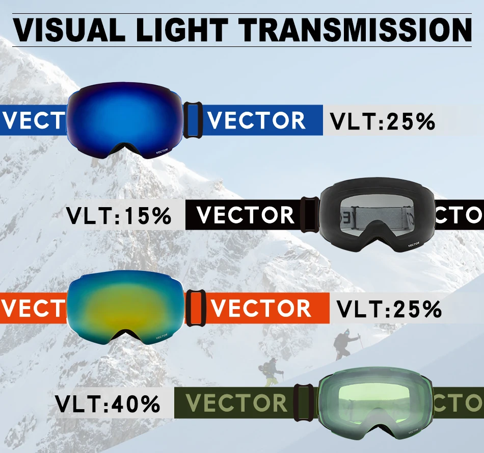 Из-за отраженного снегом солнечного света сильный плюс холодный ветер стимулирует глаза. Мы предлагаем вам выбрать профессиональные защитные лыжные очки, а бренд «VECTOR»-ваш лучший выбор. Лыжные очки VECTOR-это более подходящее лицо и защищают от ветра. Линзы изготовлены из импортных противотуманных линз, а покрытия закалены и обработаны устойчивой к царапинам поверхностью, ударам и истиранию. 100% УФ, очень хорошая защита глаз