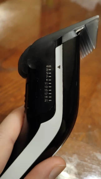 Доставлено за 3 недели в Мск почтой, трек отслеживался. Насадка упакована в пластик, пришла в пакете, без повреждений. По сравнению с оригинальной поверхность чуть более шершавая (при стрижке это чувствуется) и разметка смещена: для примера на последней фото изображена родная насадка, на предпоследней - сабж. Обратите внимание, что разметка на корпусе триммера не располагается относительноинасадок по-разному. Но некритично.