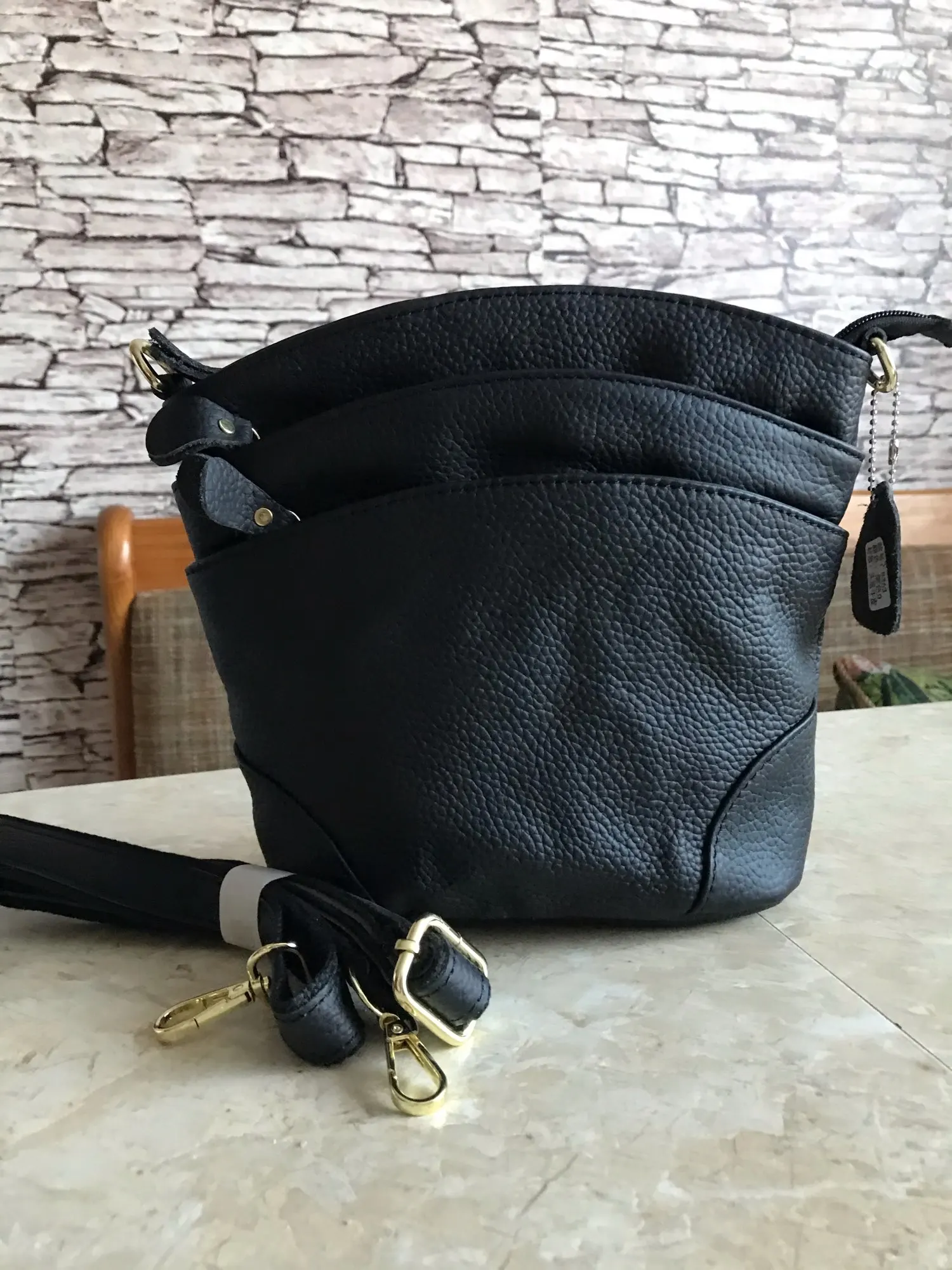 Сумка в порядке, возможно, я не хотел бы иметь золотые крючки/фитинг, но ремень для кошелька высокого качества.
