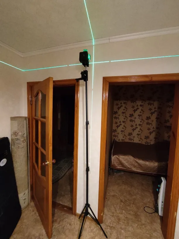 Отличный штатив. Даже чуть выше чем заявлено. Очень удобно работать лазером под потолком.