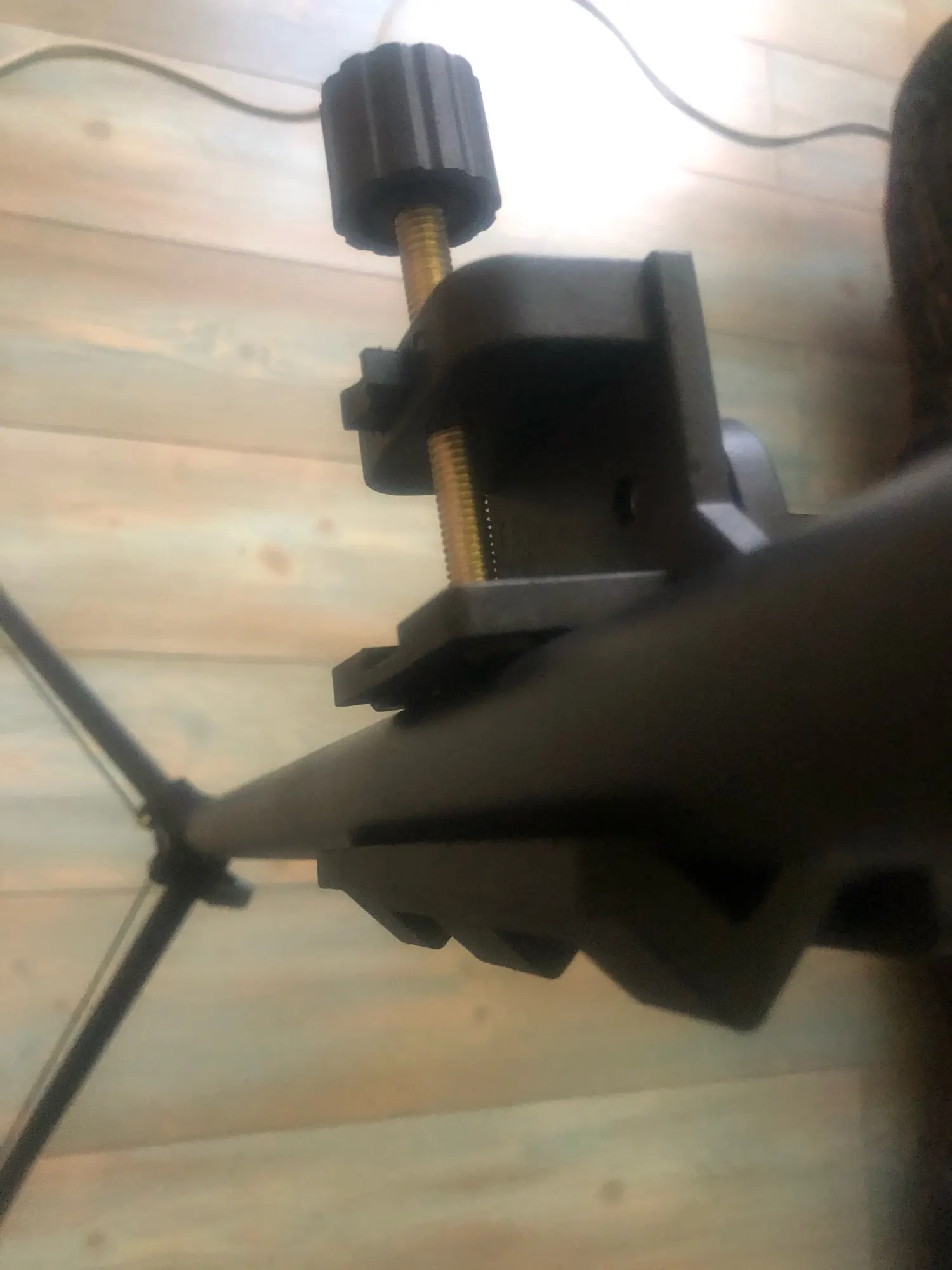 Штатив заказывал с креплением из Китая, а прислали супер-быстро почтой России из Москвы. Приятный бонус. Штатив неплохой, как и на фото. На упаковке написано штатив 2м, а 2.2м это с натяжкой, если свести ноги по максимуму, тогда он может завалиться. Крепление трубе классная штука, с ним горизонт можно установить минимум на 19 см от пола, а максимально у меня вышло 2.27м. Думаю можно заколхозить его и повыше