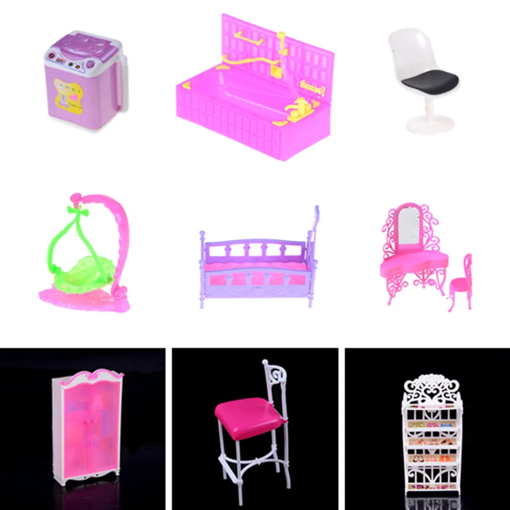 15 видов стилей пластиковая мини кровать стул Туалет стиральная машина устройства кукольный домик мебель игрушка для кукол девочек лучшие подарки 1 шт