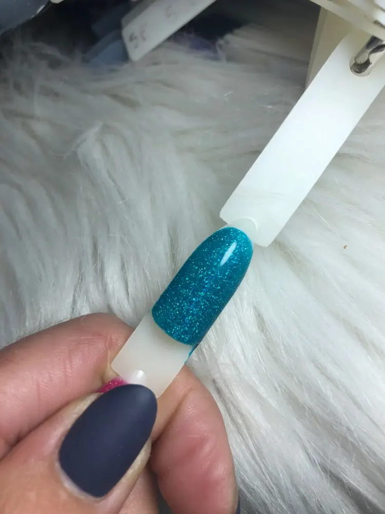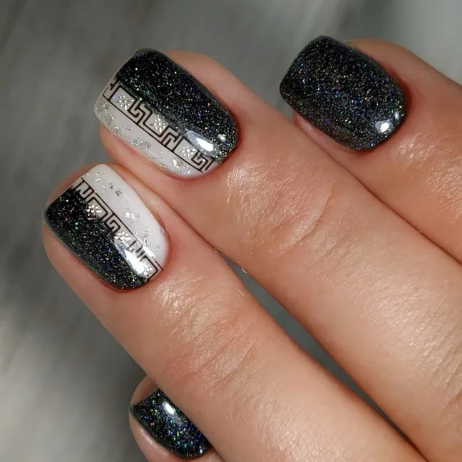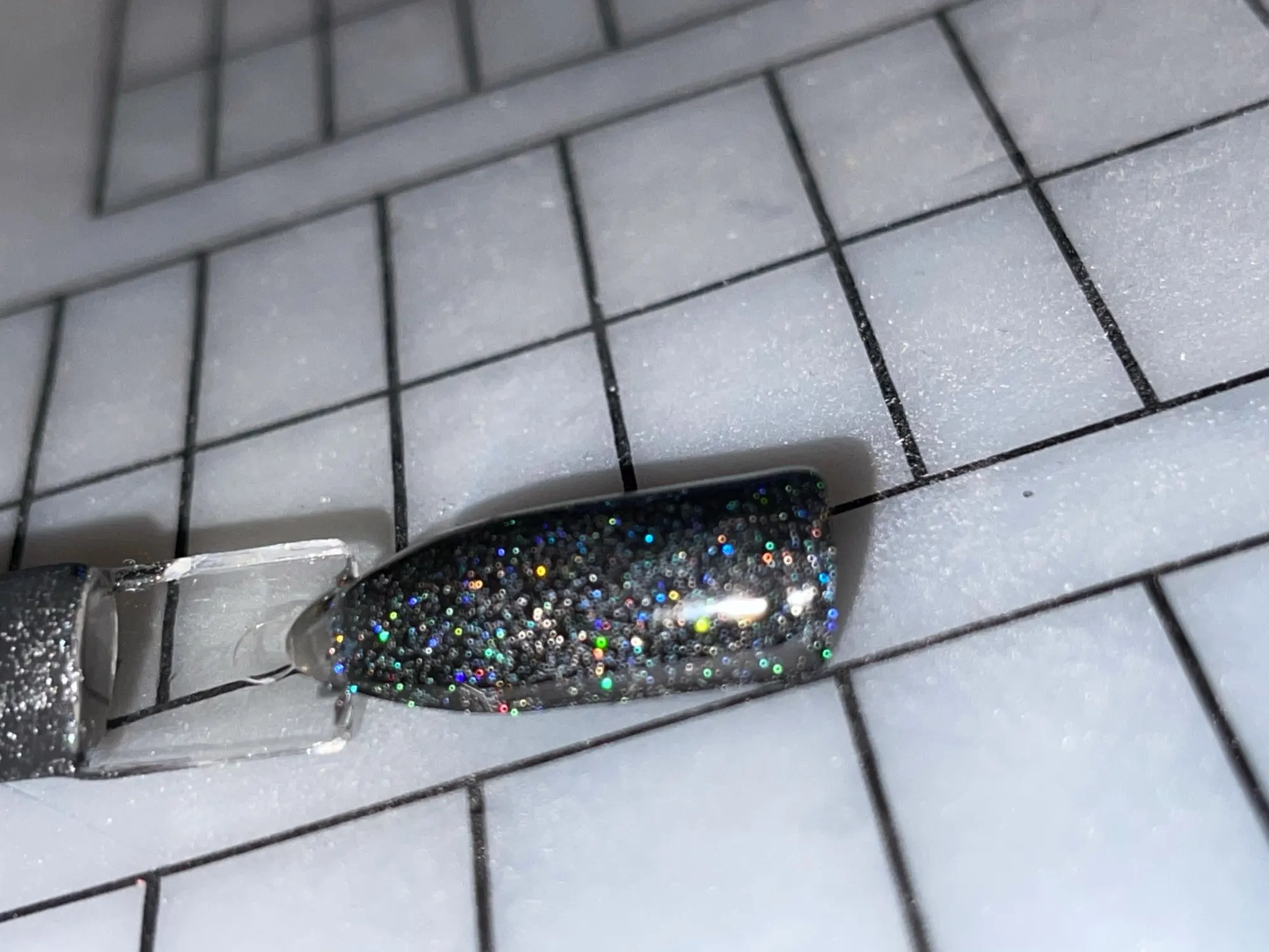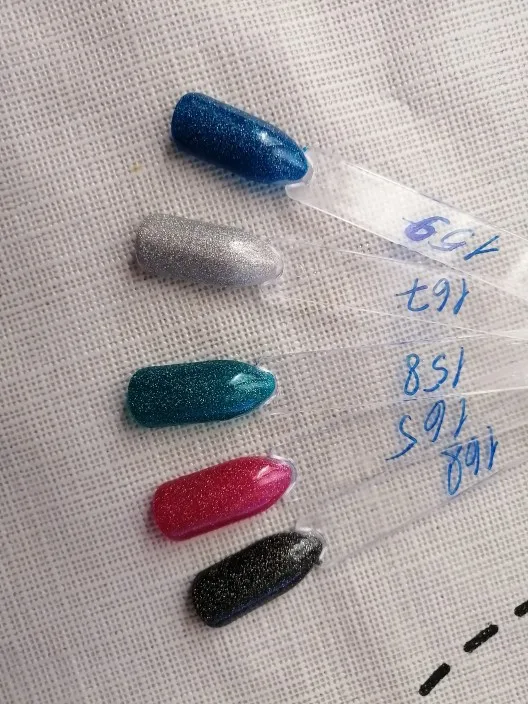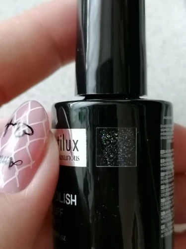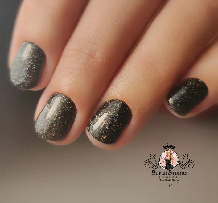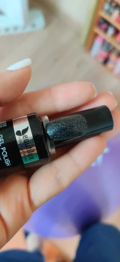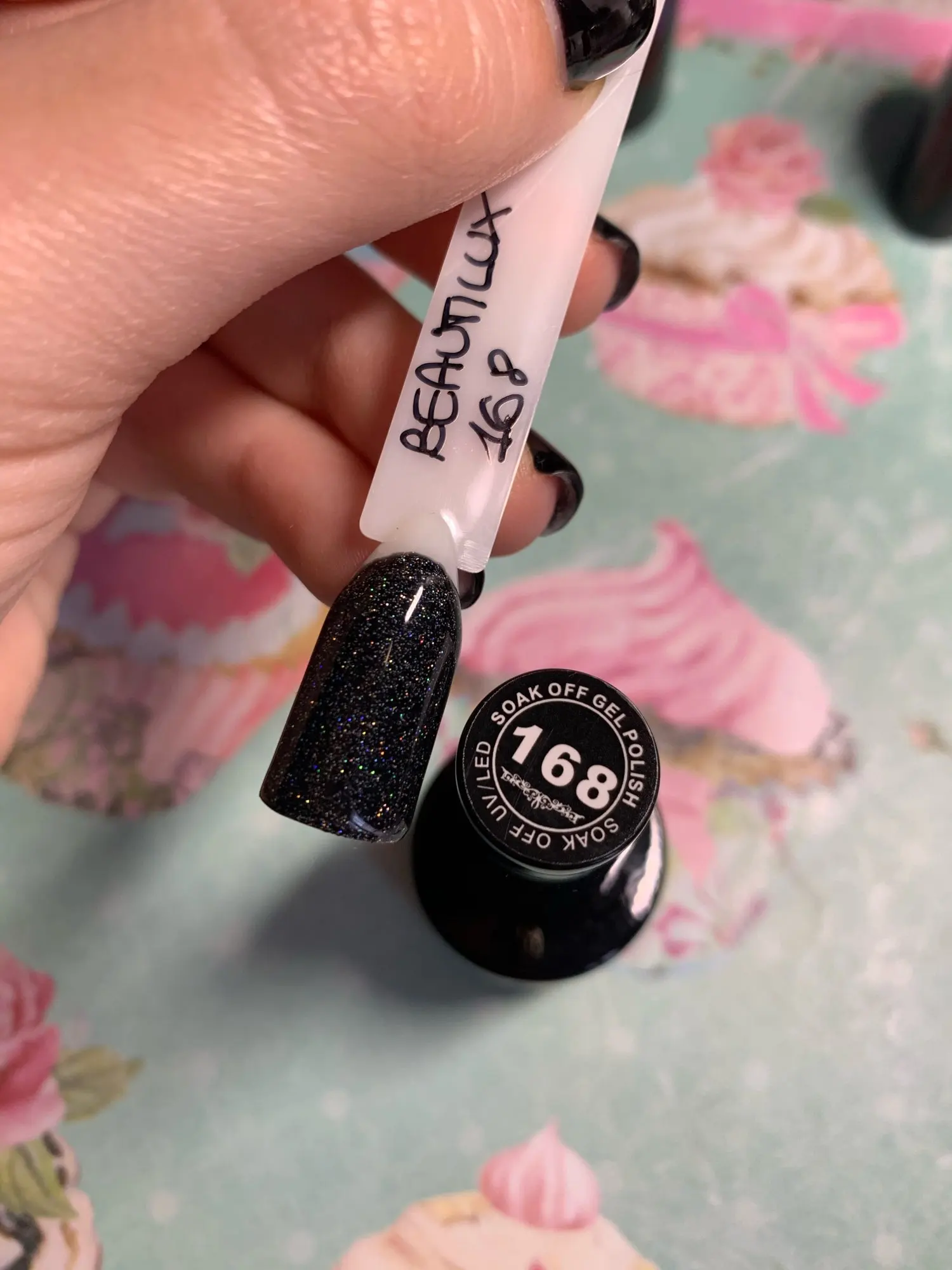 Шёл до Кемеровской области почти 2 месяца. Основа чёрно-графитовая плотная, шиммер мелкий голографический в большом количестве. Наносится легко, саморазравнивается, не течёт. В один средний слой без проблем. Красивый) Ждала к новому году)