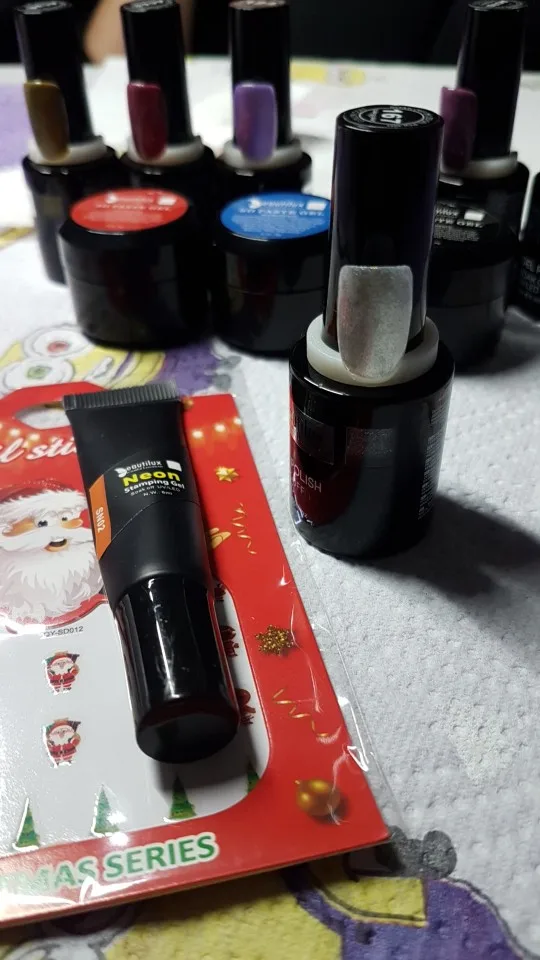 Заказ шёл 3 месяца, что очень долго. Этой фирмой я пользовалась ранее, поэтому заказала сразу несколько цветов. Продавец положил, как подарок: тюбик с синим неоновым гелем и наклейки. Очень приятно. Цвет в баночке красивый, кисточка удобная. Конкретно этот ещё не использовала.