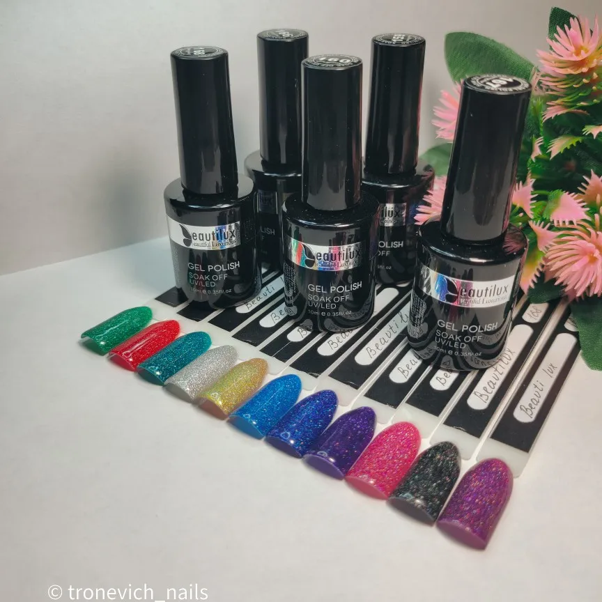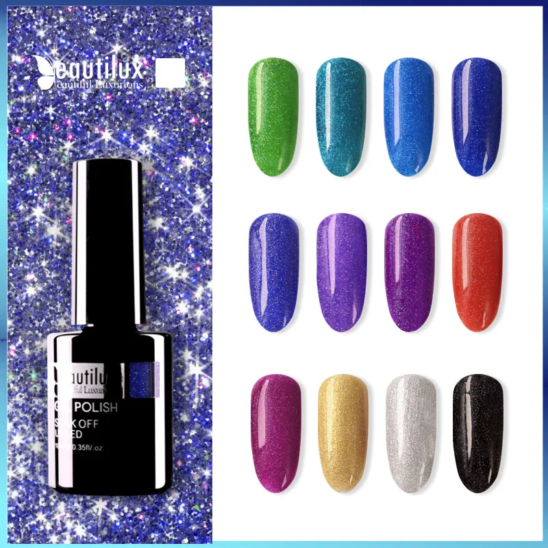 Beautilux, 1шт, радужный, голографический, игристый цвет, гель-лак для ногтей, лак для ногтей неил-арт, декоративный лак для ногтей, эмаль для ногтей 10 мл