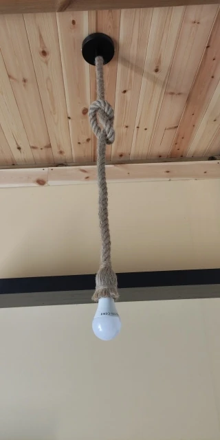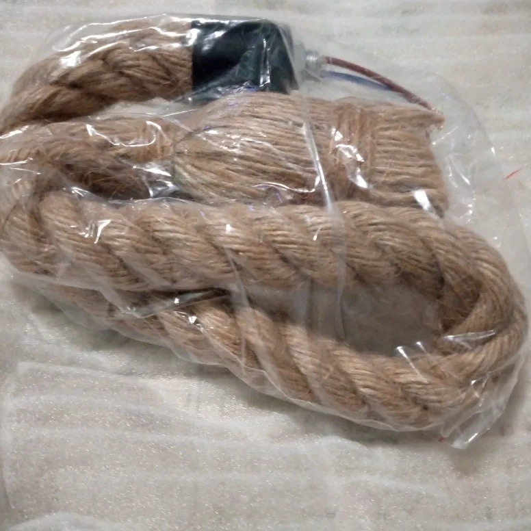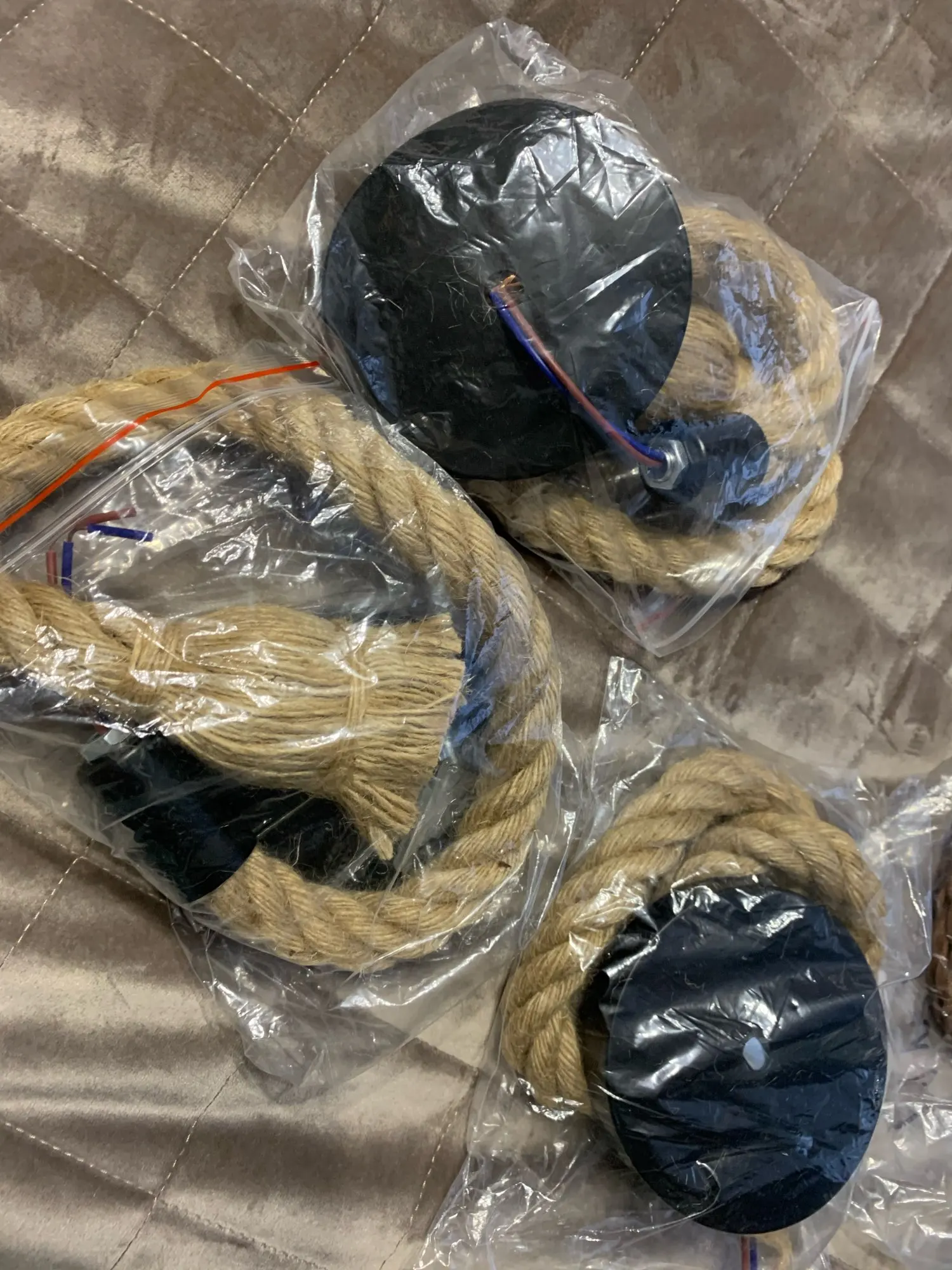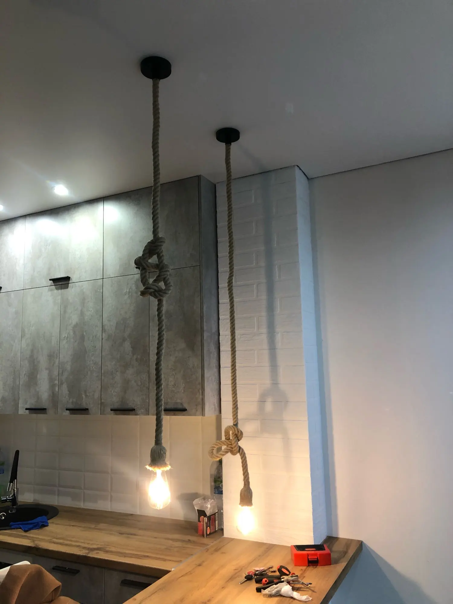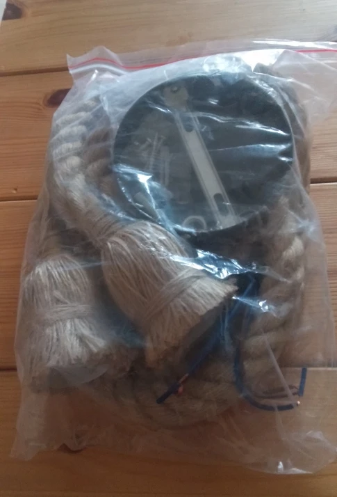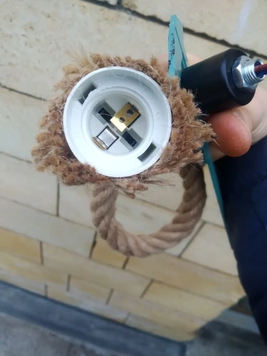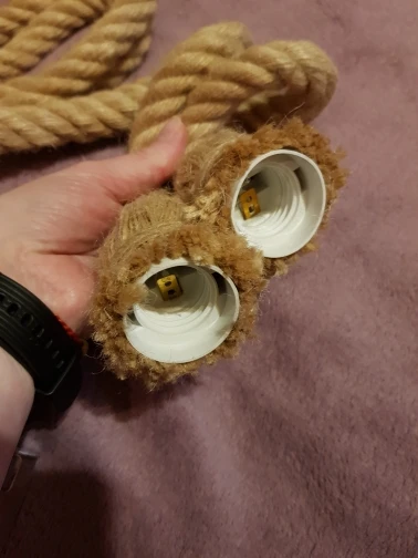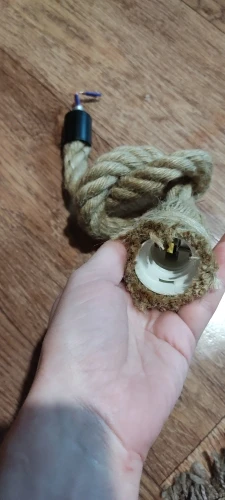 Продавцу спасибо, все дошло быстро. Веревка джутовая, кабель спрятан хорошо, патрон пластиковый белый, спрятан аккуратно. На выходе 4 провода, изоляция на 1 см зачищена, готова к подсоединению.