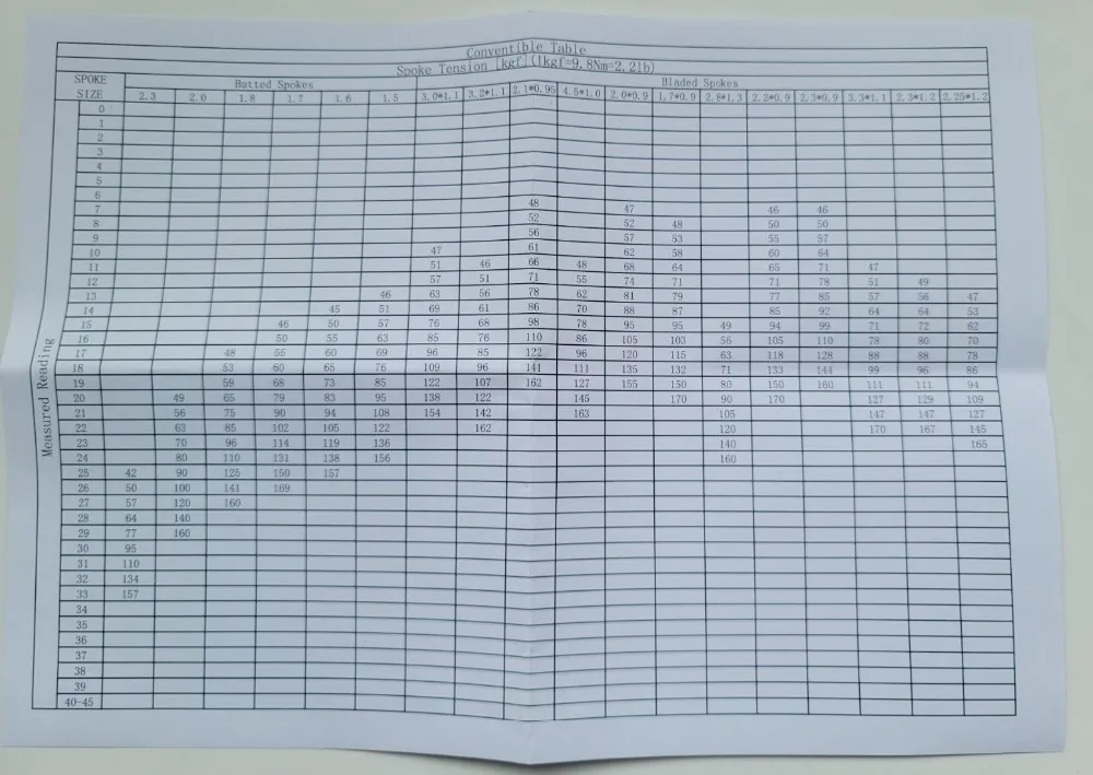 Хорошо работает. Не уверен в точности, но я использую его для сравнения между спицами на одном колесе и сравнения натяжения на колесе, которое я построил с предварительно изготовленным колесом.