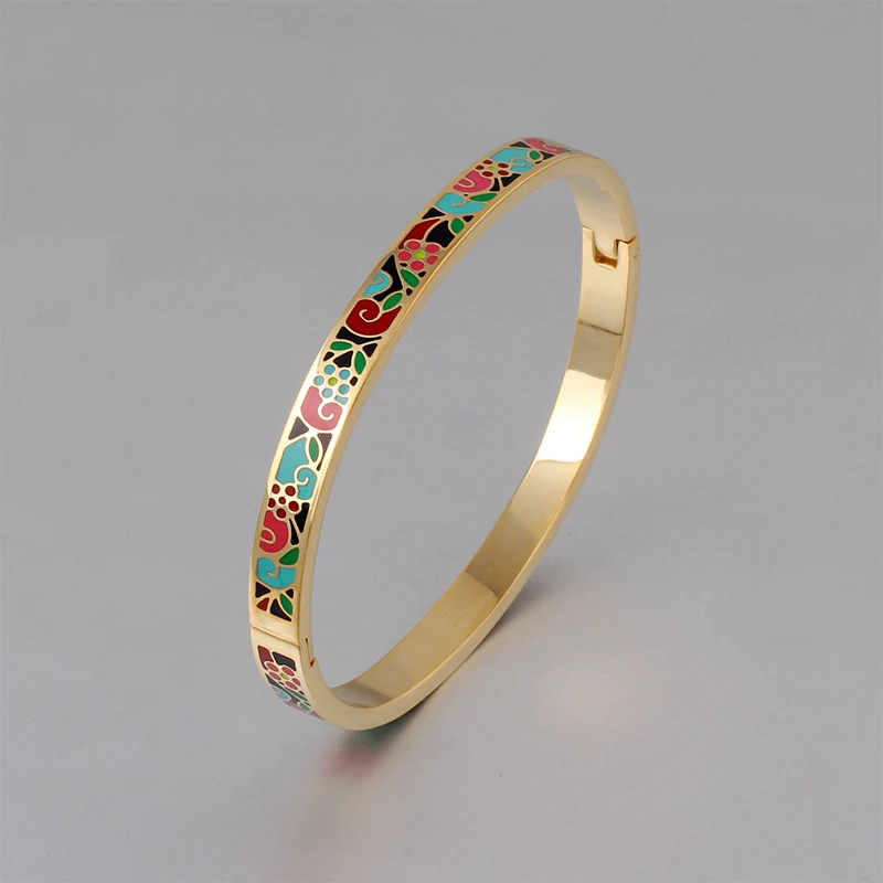 Браслеты для женщин манжета модная 0,6 мм ширина Этнические Красочные Цветочный узор эмаль ювелирные изделия
