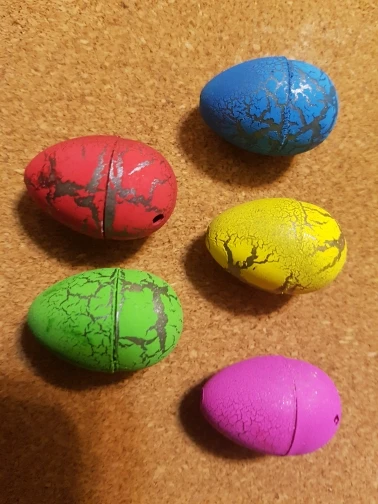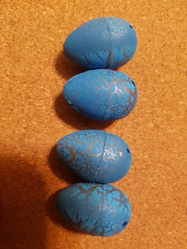 very small dinosaurs. if you put them in wather they are ugly. some legs qre missing. the egg do no crack in wather, after half hour