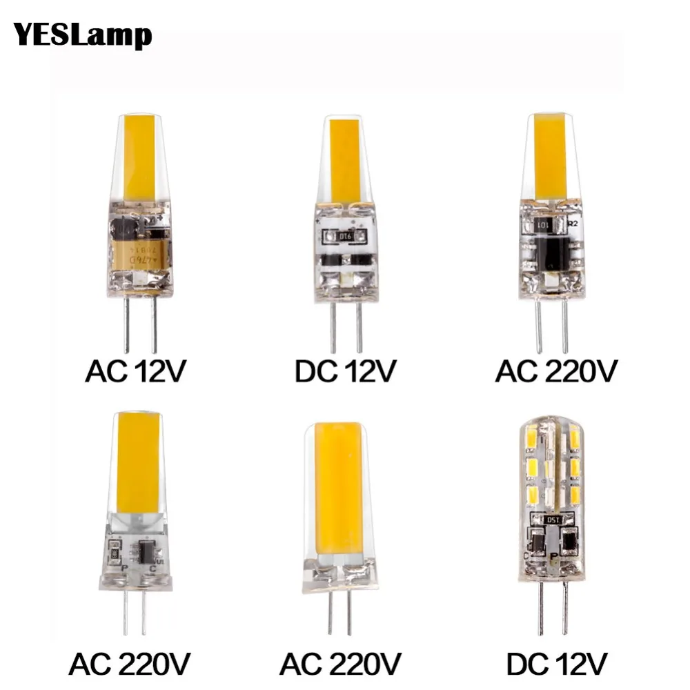 Светодиодная лампа G4, G9, E14, 10 шт., затемняющее освещение, 12 В постоянного тока, 220 В переменного тока, 3 Вт, 6 Вт, сменные галогенные лампы COB SMD, точечные светильники, люстра