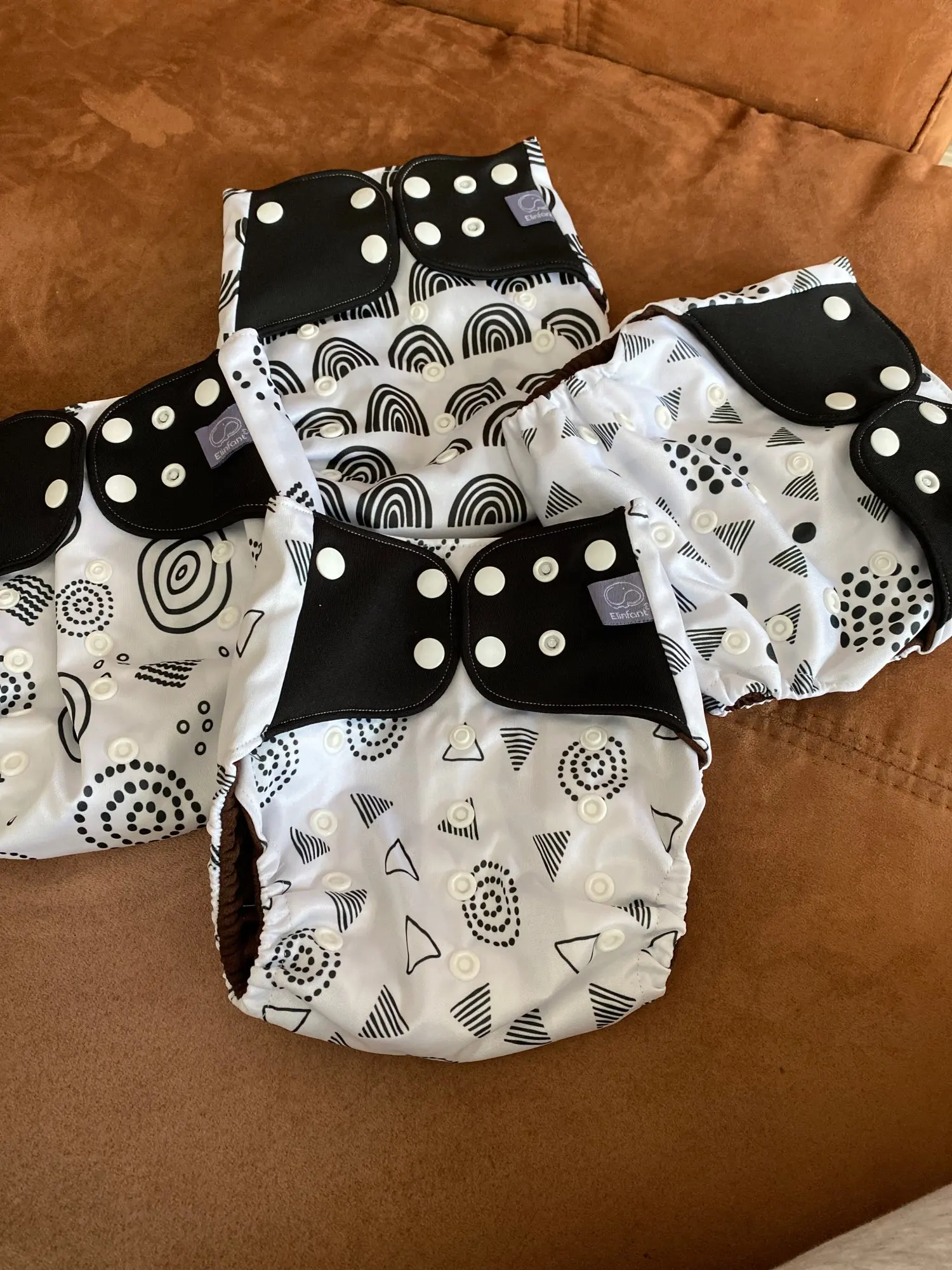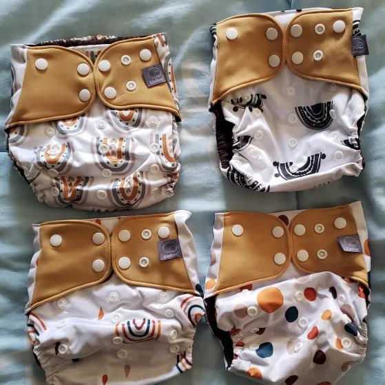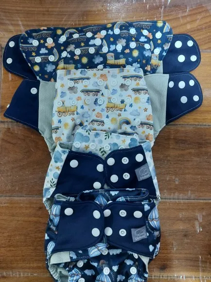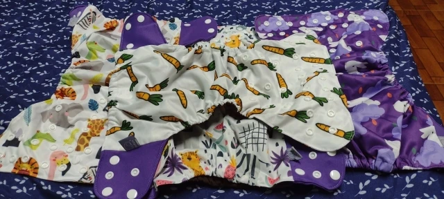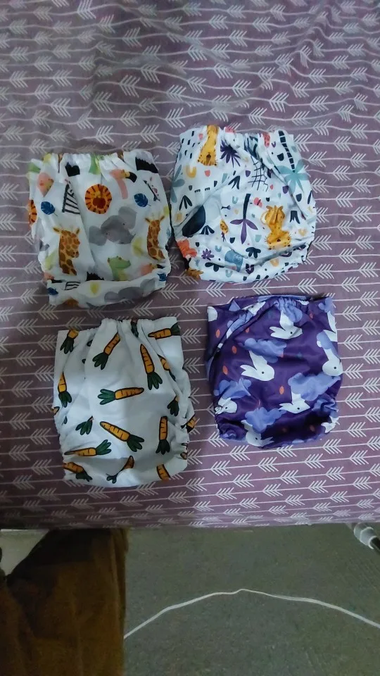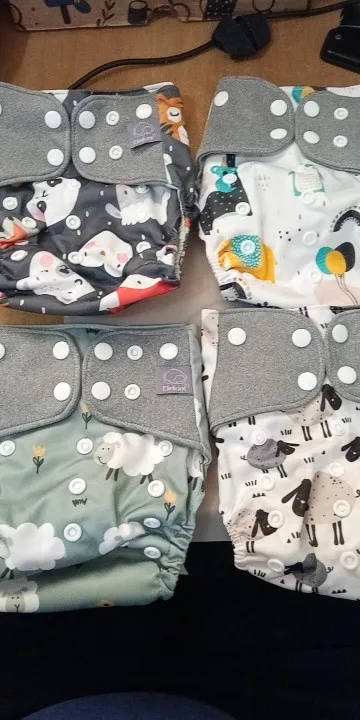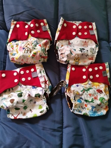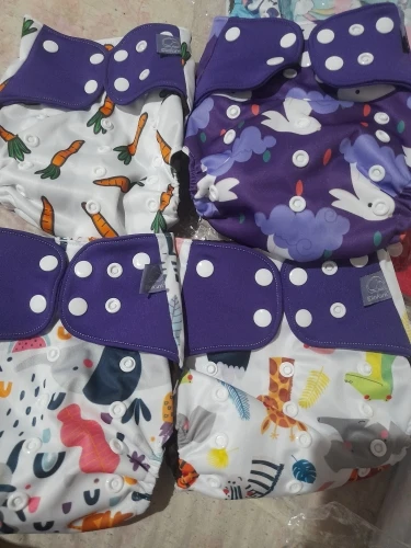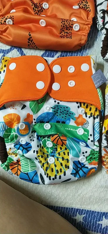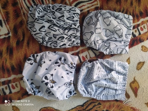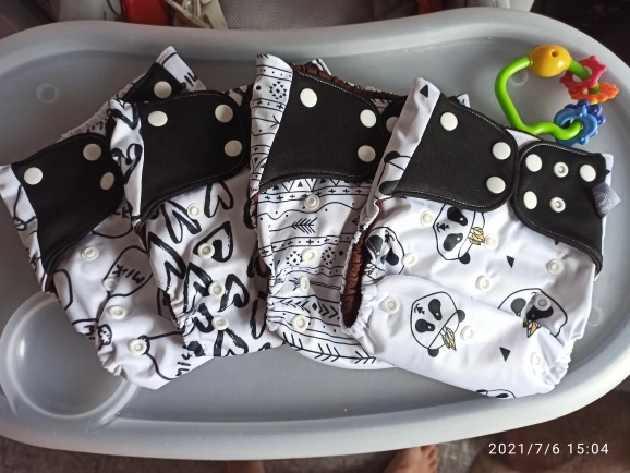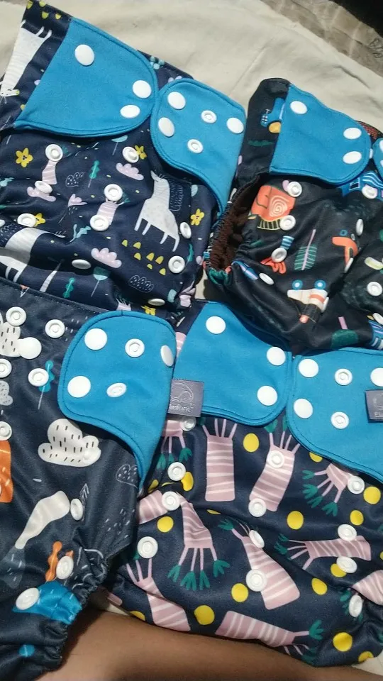 Подгузники поставляются в упаковке очень быстро и красиво. Принт выглядит точно так же, как на фотографии, качество выглядит отлично, плоские пуговицы и удобные. Мне понравилось!