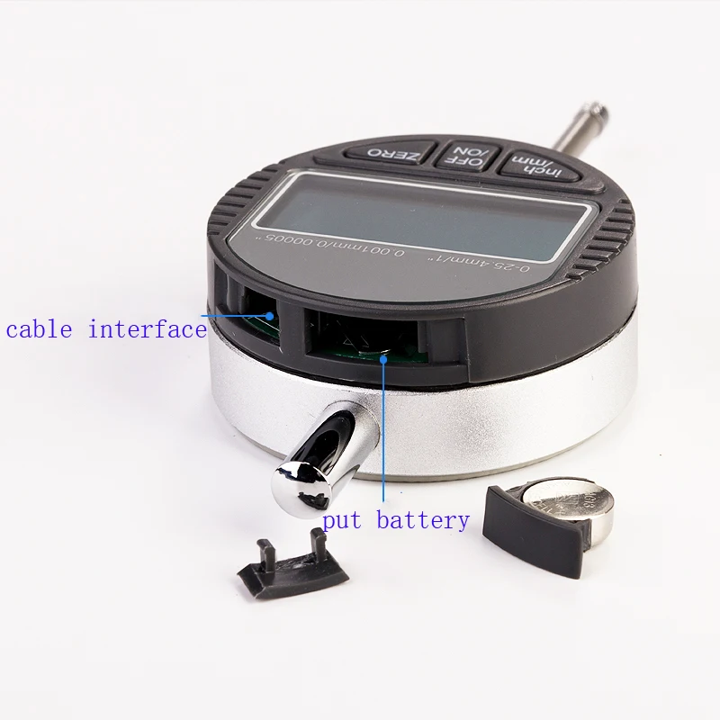 Это дюймовый и метрический цифровой индикатор с ЖК-дисплеем для измерения вариаций поверхности, который имеет диапазон измерения12,7 ммМм и Разрешение 0,001 мм, наконечник, диаметр стержня M2.5.