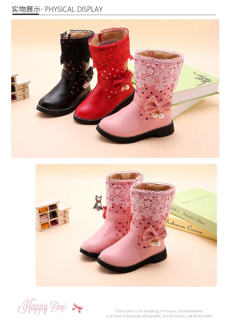 Зимние высокие сапоги для девочек; Модная модельная обувь с мехом; Детские зимние сапоги для девочек; Модные сапоги с бантом и жемчугом; Детские теплые сапоги