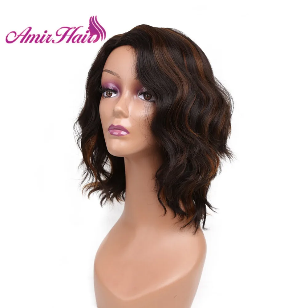 Парик с короткими волнистыми волосами, термостойкие синтетические волосы с эффектом блонд и Омбре, 14 дюймов, с боковой челкой, для черных женщин