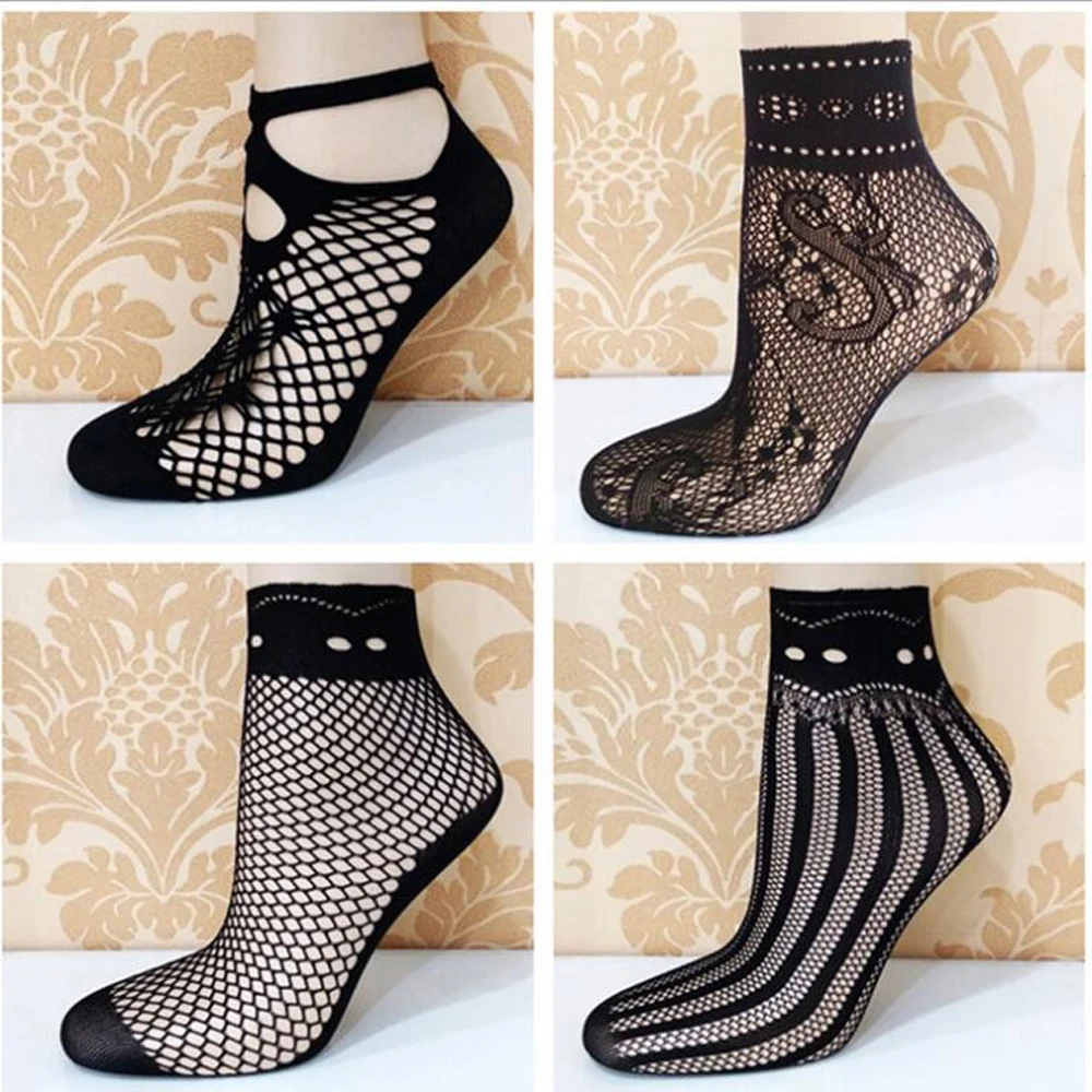 Новинка, модные высококачественные сетчатые носки из трех элементов, тонкие маленькие сетчатые сексуальные носки в сеточку с цветами, женские художественные носки
