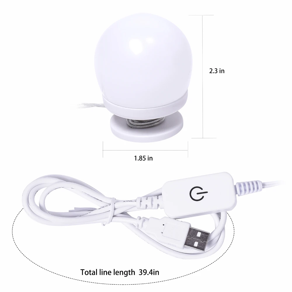 Голливудский светодиодный зеркальный светильник s Kit, с регулируемой яркостью, USB светильник s, косметический светильник, полоска для спальни, гардеробной, свадьбы, вечерние осветительные приборы, CRI>90 (4000K натуральный белый 10 ламп 5V USB)