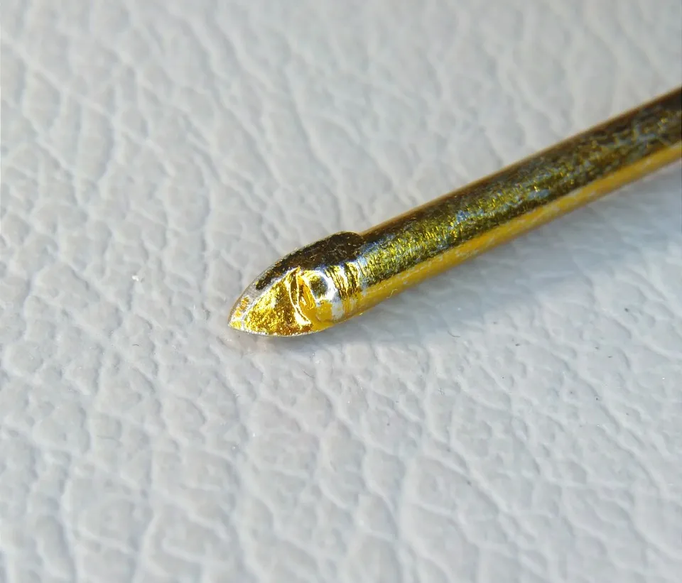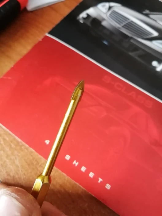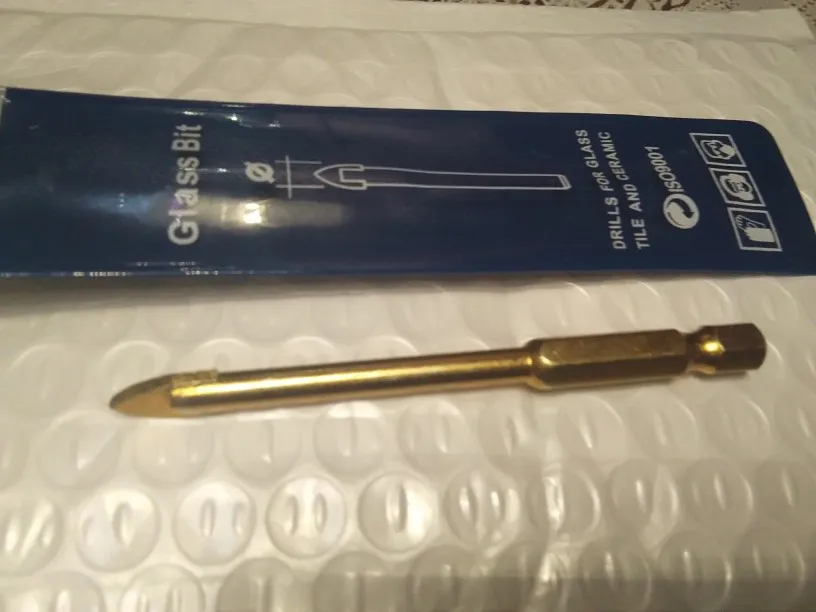 Упаковано в почтовый пакет с пупырышками и в фирменную упаковку. Брал самый меньший диаметр, стекло и камень сверлит, но я бы посоветовал сперва по тренироваться на 'кошках' :) а потом уже сверлить изделие. Не понравились углы заточки у данного сверла. Также не забывайте его постоянно охлаждать. Из-за углов заточки больше трёт чем сверлит.