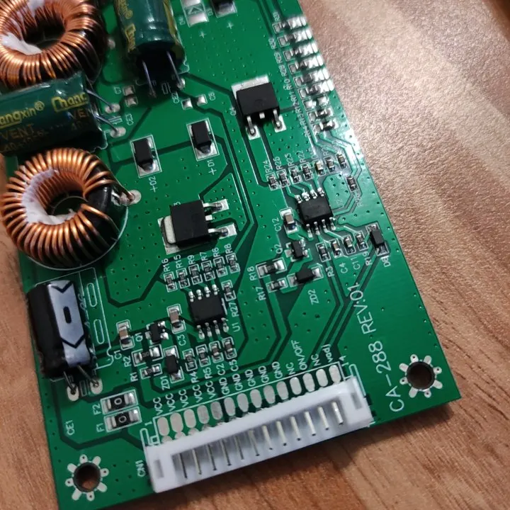 2 карты, заказанные 06 dec 2020, получены 21 dec 2020. Минимальная упаковка, но достаточно, эти карты не хрупкие. Питание от карты 24 В предоставляется для обеспечения постоянного тока в светодиодах. Ток регулируется сварочным соединением шунтирующих резисторов. Карта, вероятно, планируется доставить 25 Вт в светодиодах. С регулировкой на 50 Вт карта действительно начинает сильно нагреваться, транзисторы SMD недостаточно охлаждаются. Для 25 Вт нет проблем, очень хороший продукт. Я буду использовать 4 карты, чтобы заказать подсветку моего экрана 55 "(100 Вт). По этой цене я ни на минуту не сомневайтесь.