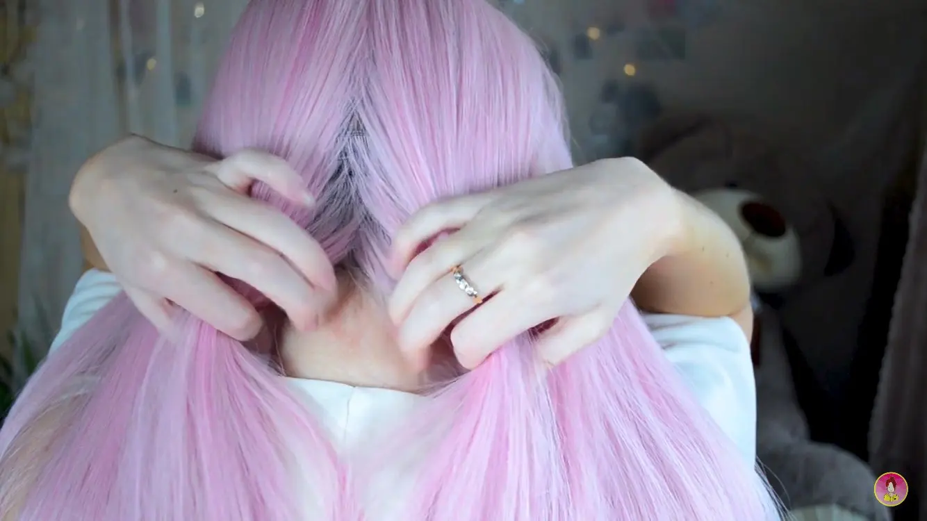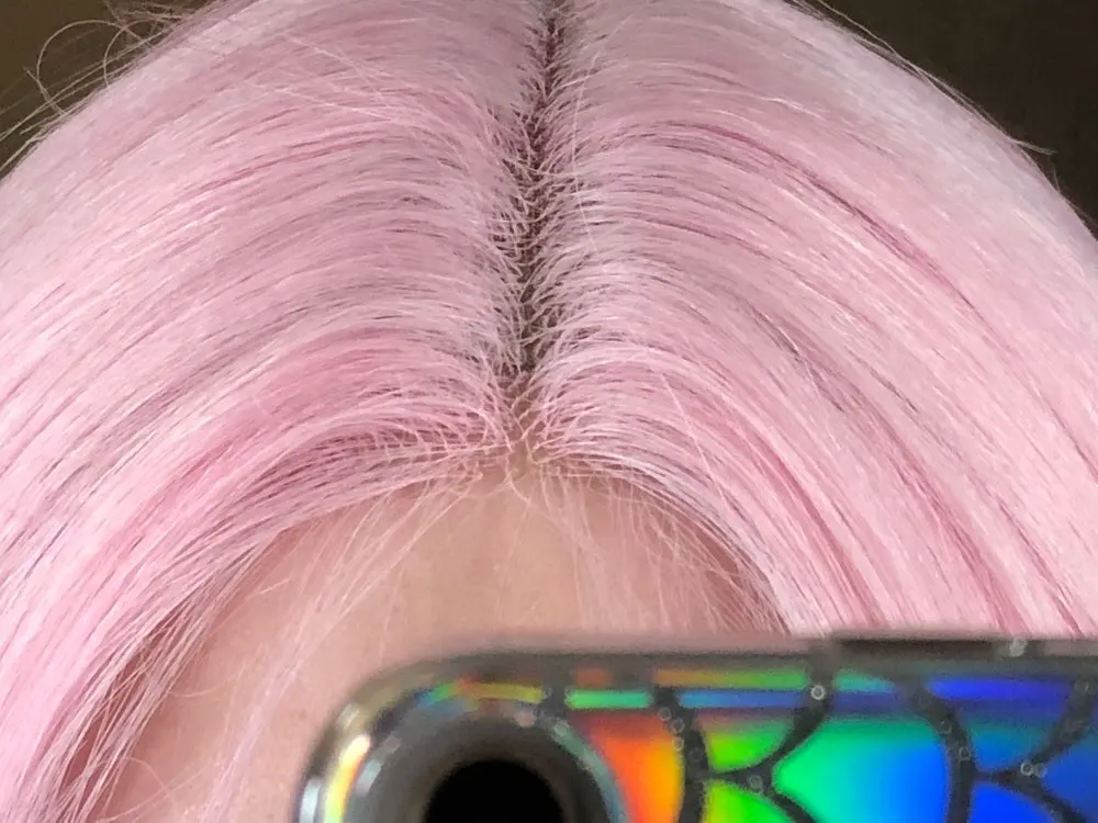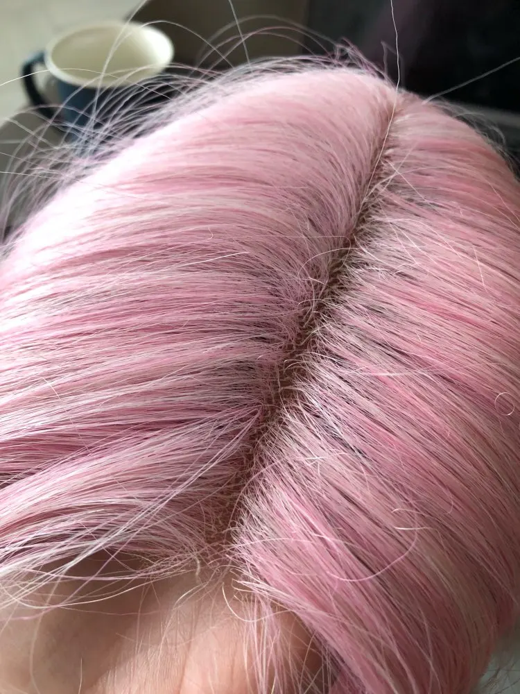 к сожалению пробор у розового парика не на сетке :( это большой минус...
