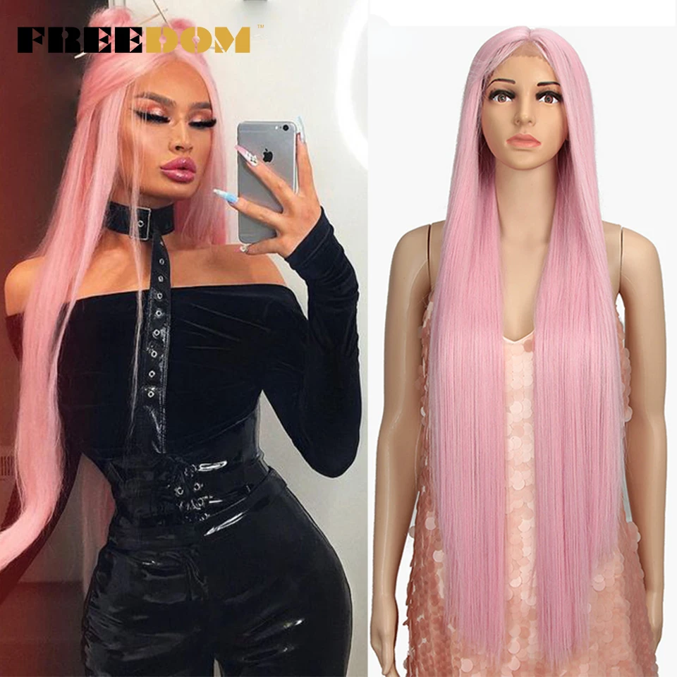 Синтетический кружевной парик FREEDOM, 38 дюймов, длинный прямой парик с глубокой частью, Искусственные парики с эффектом омбре для черных женщин