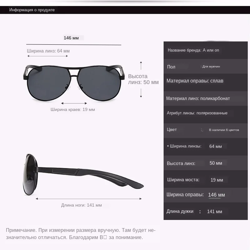 Солнцезащитные очки AORON мужские, поляризационные зеркальные солнечные, для вождения, в металлической оправе