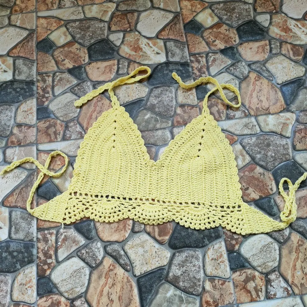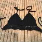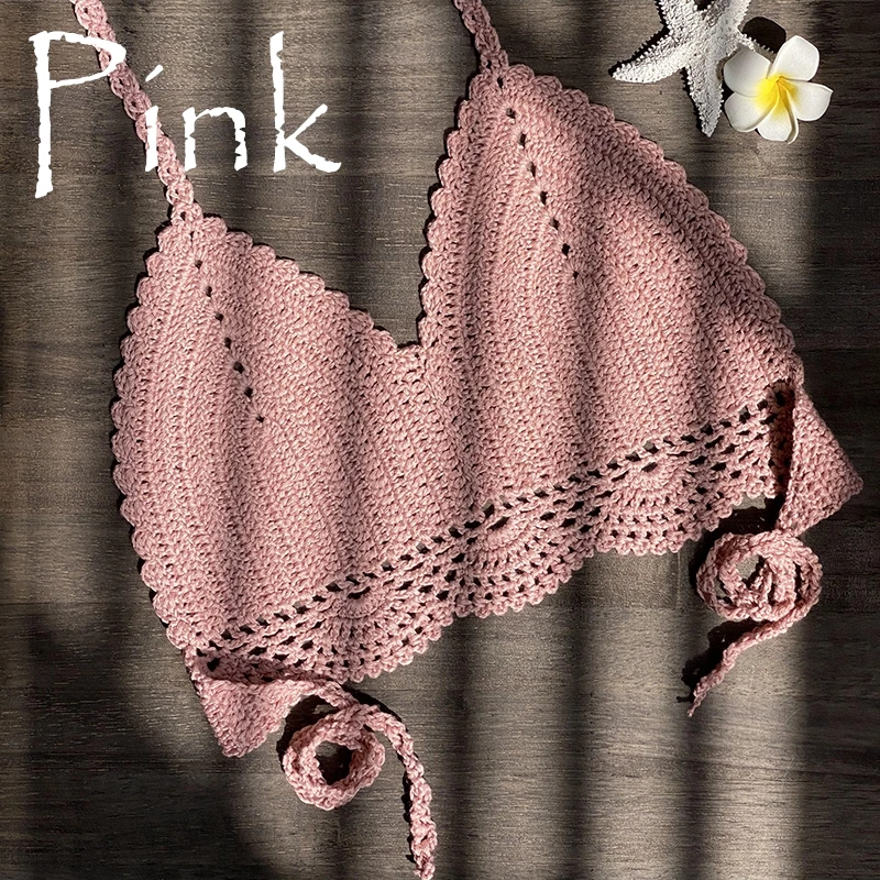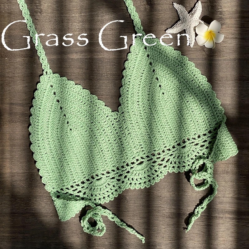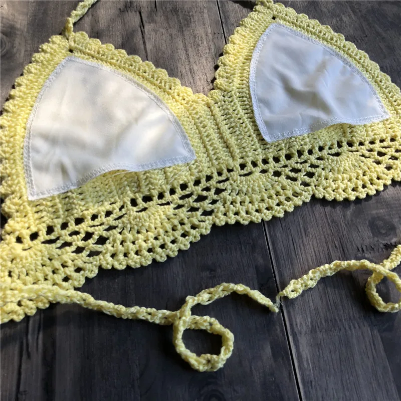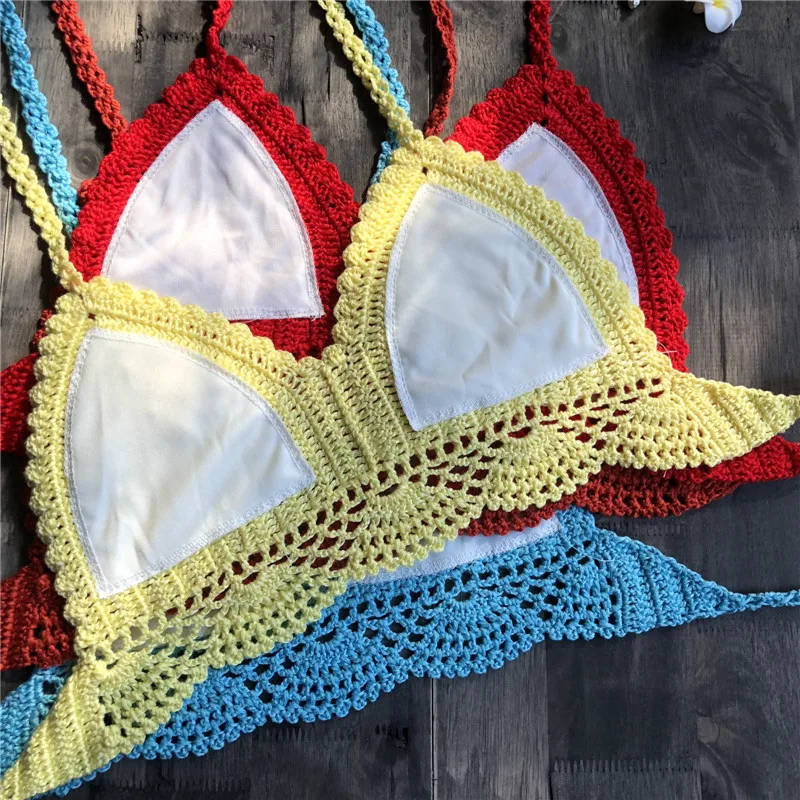 Женский пляжный купальник-бикини, вязаный крючком лиф в стиле бохо, однотонный, с лямкой на шее, бразильские бикини, 2021