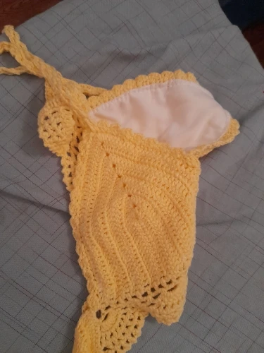 Ну ,что я могу сказать топ конечно хороший.Связан хорошо,но он из мягкой пряжи ,что для такого типа топа странно .Если у вас маленькая грудь и узкая грудная клетка то пойдет ,а если она 2 и больше размера и грудная клетка широкая то я не советую так как смысла в нем нет .И я наивная поверила некоторым советчикам и заказала М на свои 85В (100ог)это была большая ошибка .Возможно XL и сядет как надо ,но я точно заказывать подобный топ не буду. Повторюсь он хороший ,но не для меня. Может они всем разные приходят хз,но он безумно мягкий и сильно тянется. Подарю, не пропадать же красотеФотографии продавца соответствует.
