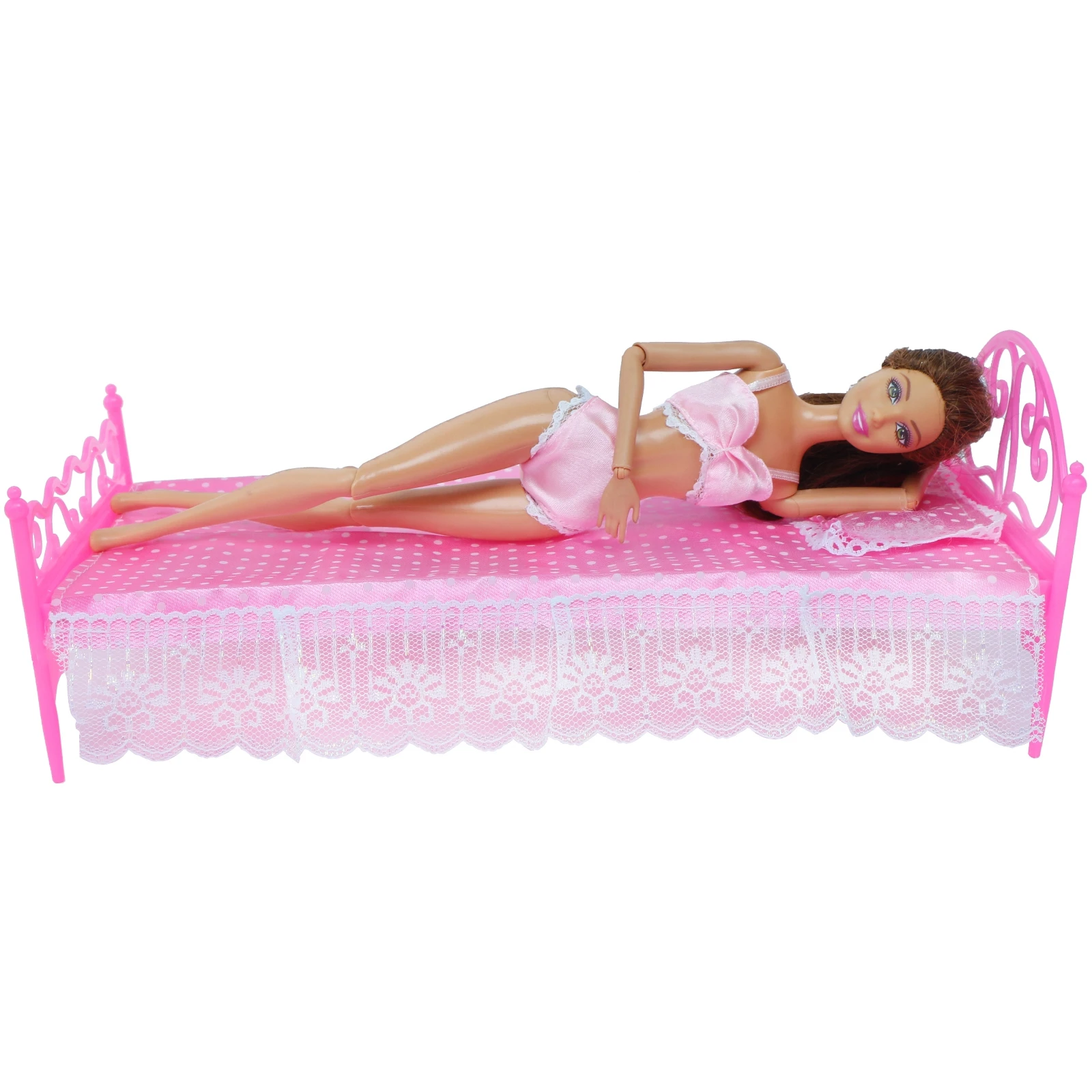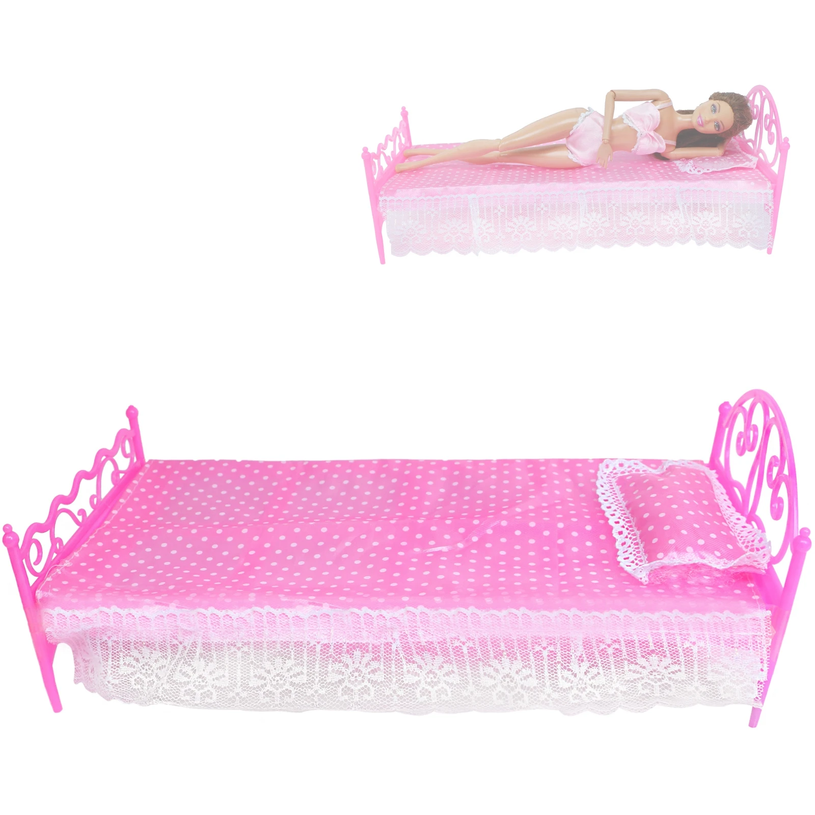 Мини розовая кровать с подушкой постельное белье кукольный домик миниатюры принцесса спальня DIY мебель для куклы Барби 12 дюймов игрушка для девочек