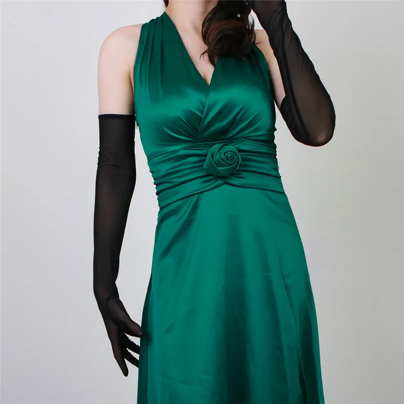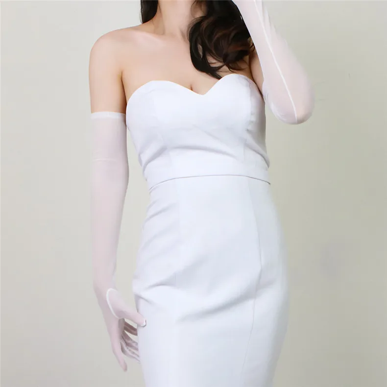 Черные шелковые перчатки 52 см сверхдлинные секционные высокоэластичные кружевные сетчатые черные вечерние платья для невесты WWS04