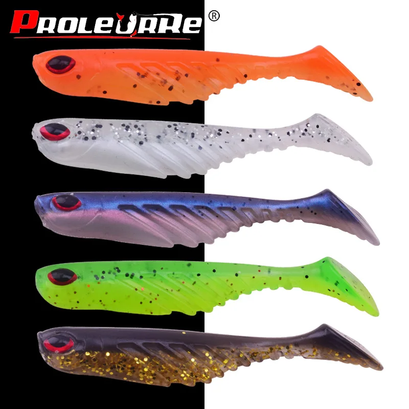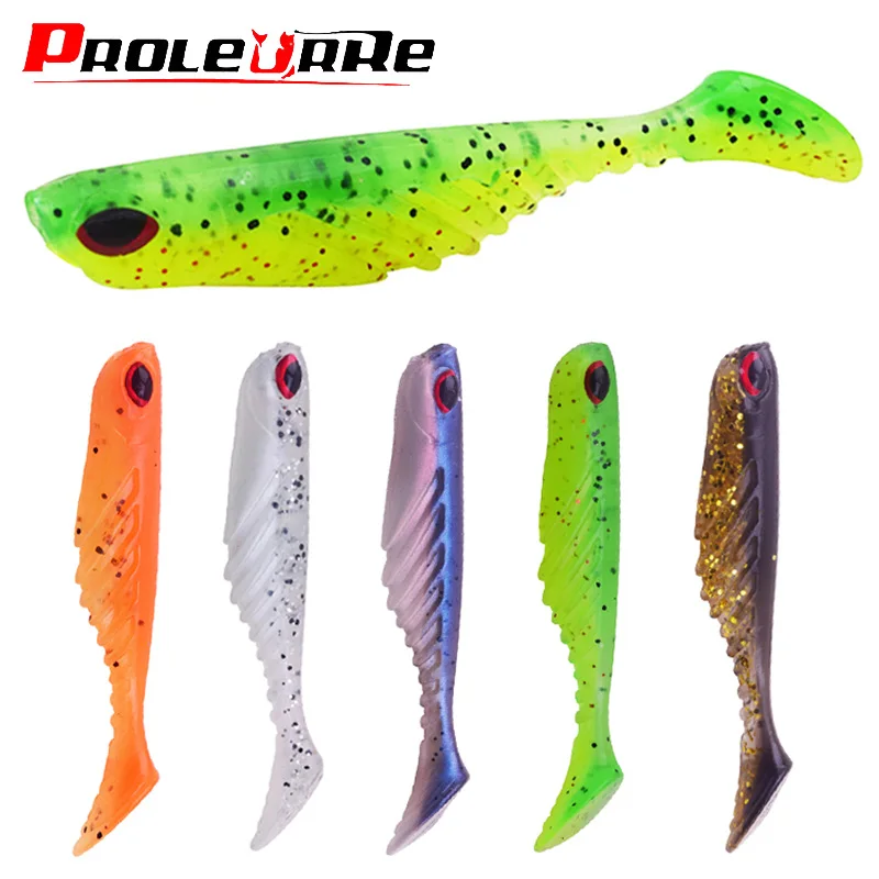 5 шт.лот крючковая Мягкая приманка 7 см 2,9 г Т-образный хвост рыболовные джиг-Воблеры двухцветные силиконовые блестки плавающая приманка Спиннер