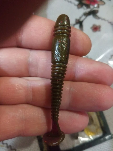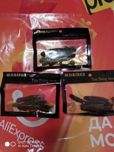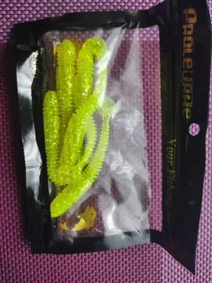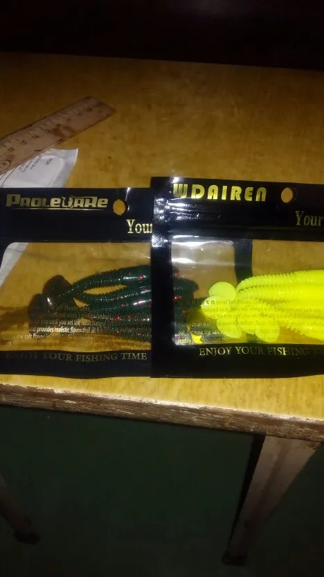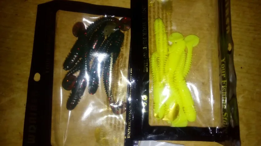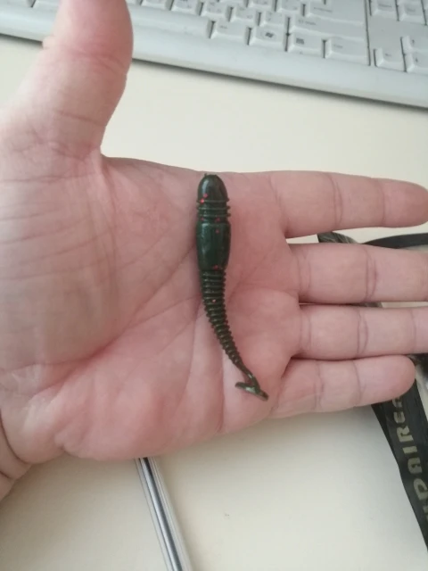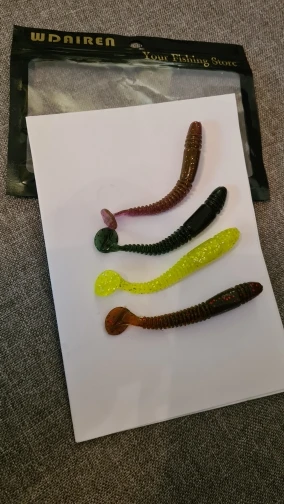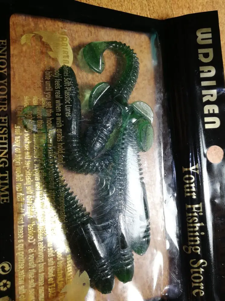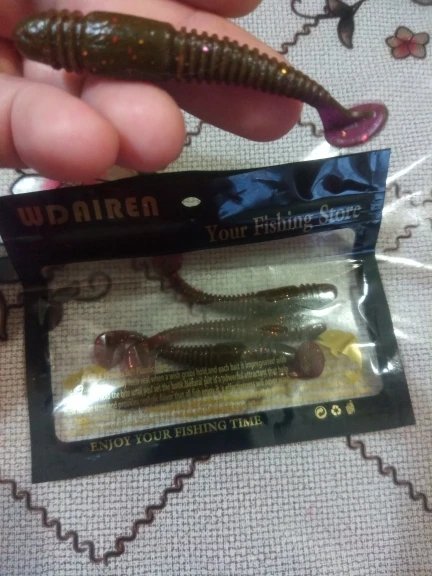 товар пришёл до Кузбасса быстро,размер и цвет соответствует,выписывал жёлтый и зелёный у одного продавца,но почему то пришли от разных производителей,жёлтый цвет фирма Вдайрен с запахом креветки,зелёный цвет фирма Пролеалурер с запахом красок гуаши(химия).хвосты очень сильно деформированы,и сам хвост и голова,выпрямится или нет не знаю,поэтому 4звезды,в целом продавца и поставщика рекомендую.